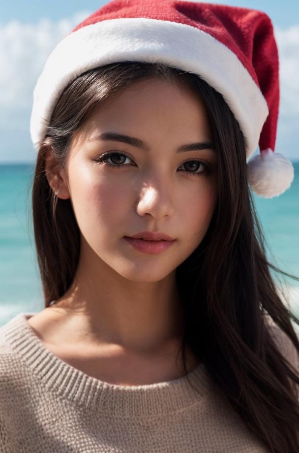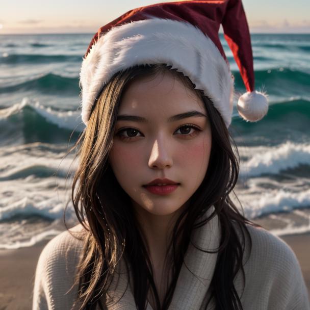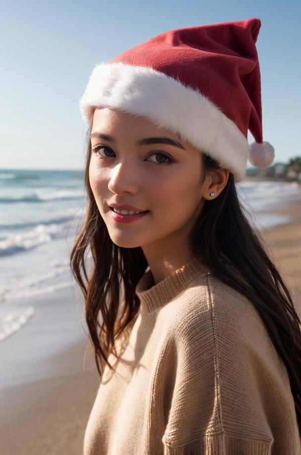 关键词是海边摄影,圣诞帽和处男杀手毛衣