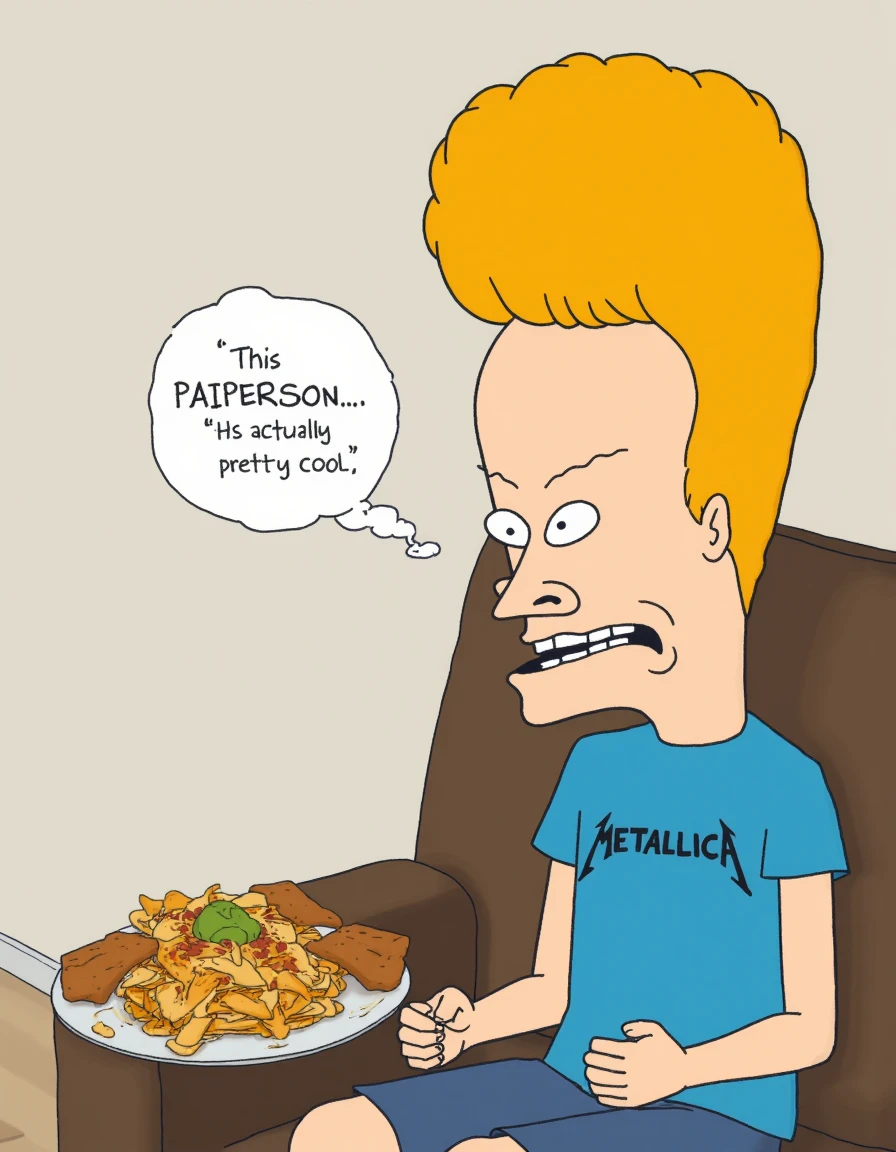The first animated character I'm putting up here, after several go throughs this one works well and even has Cornholio in it. Trained from more recent more high quality Beavis and Butt-head. This one works for what I need but if there's interest I think I can make one that will have a more 90s feel to it.