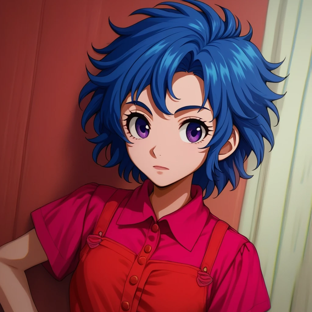 Emilymb2, blue hair, short hair, purple eyes,