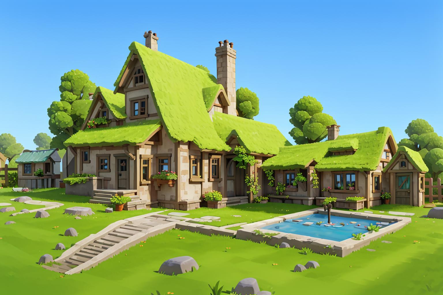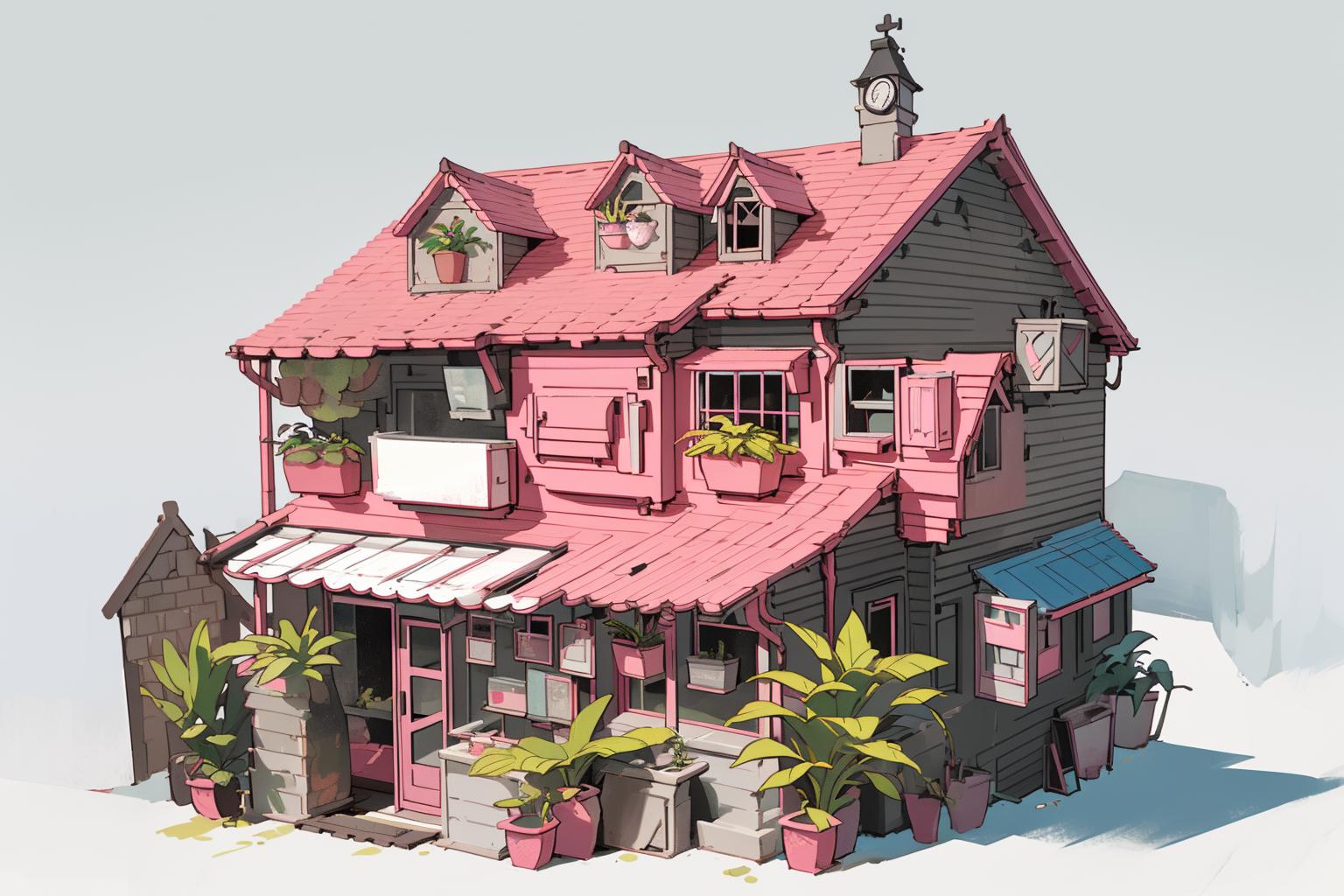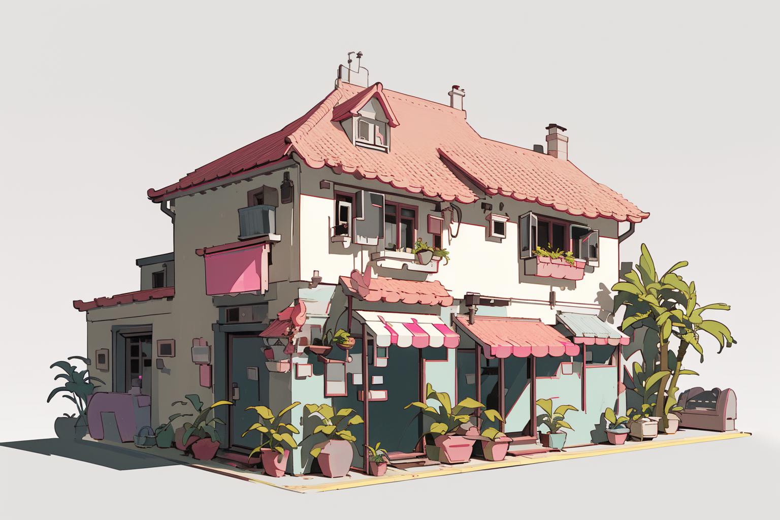 This is a lora for a house in a game, the base model used is revAnimated_v122.