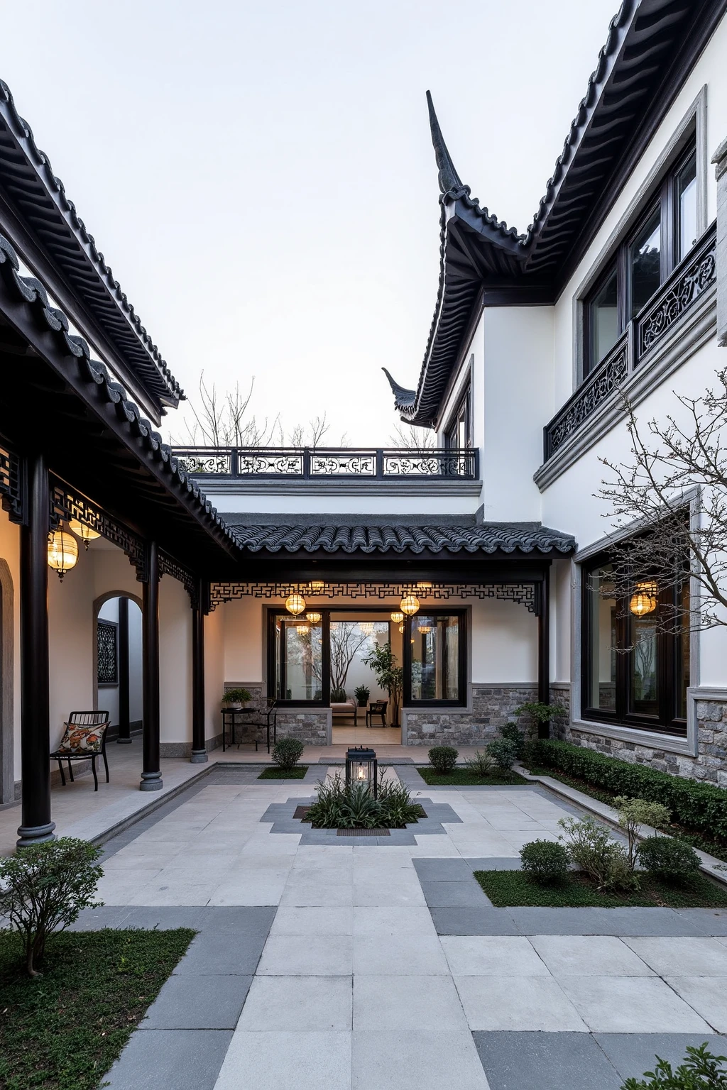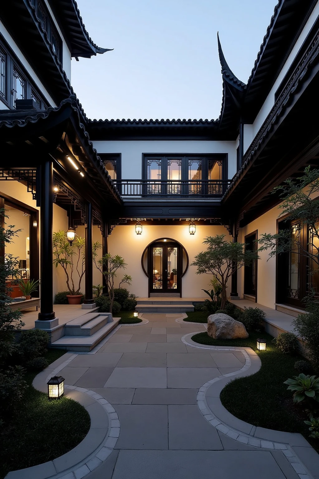 Traditional Chinese architectural style, showing Suzhou - style mansions, elegant courtyards, carved windows, and stone - paved corridors.