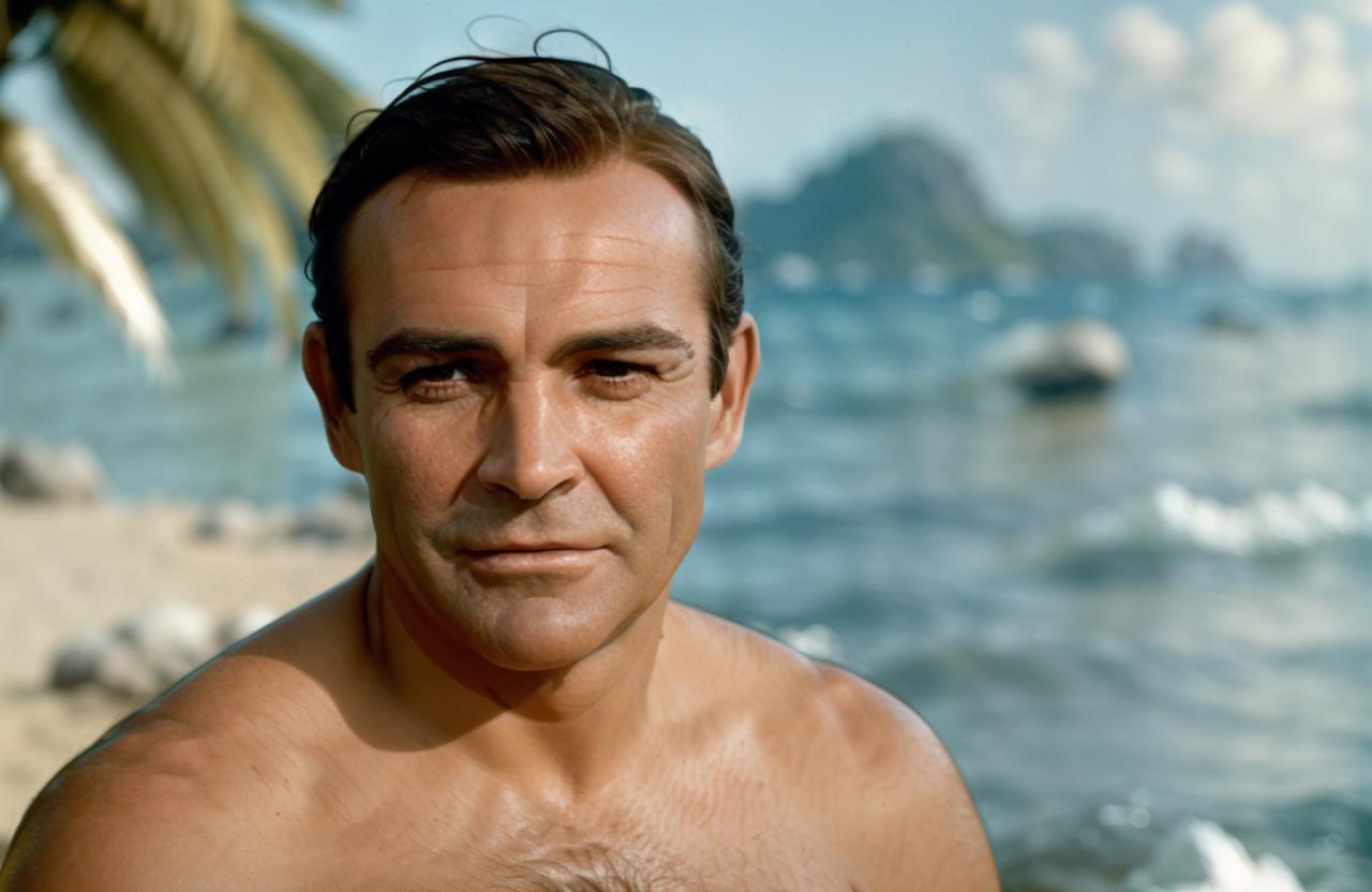 So with this one I wanted not only to capture Sir Sean's likeness from his early 30s, but also to replicate that soft focus, filmgrainy 1960s movie aesthetic from his early movies Dr. No and From Russia With Love (but not Zardoz).
