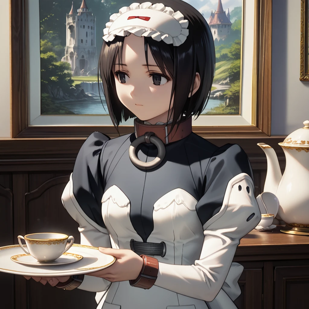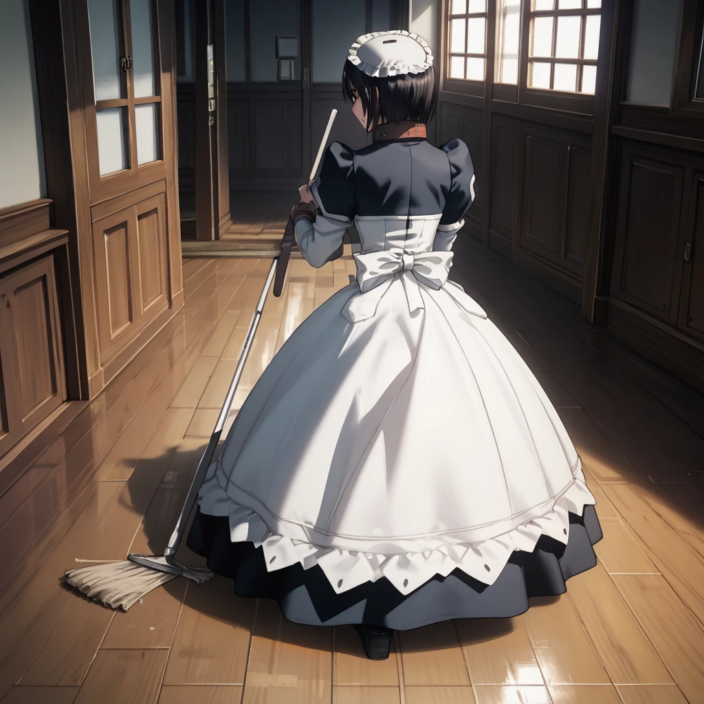 collar, maid, maid headdress, long sleeves, wrist cuffs,