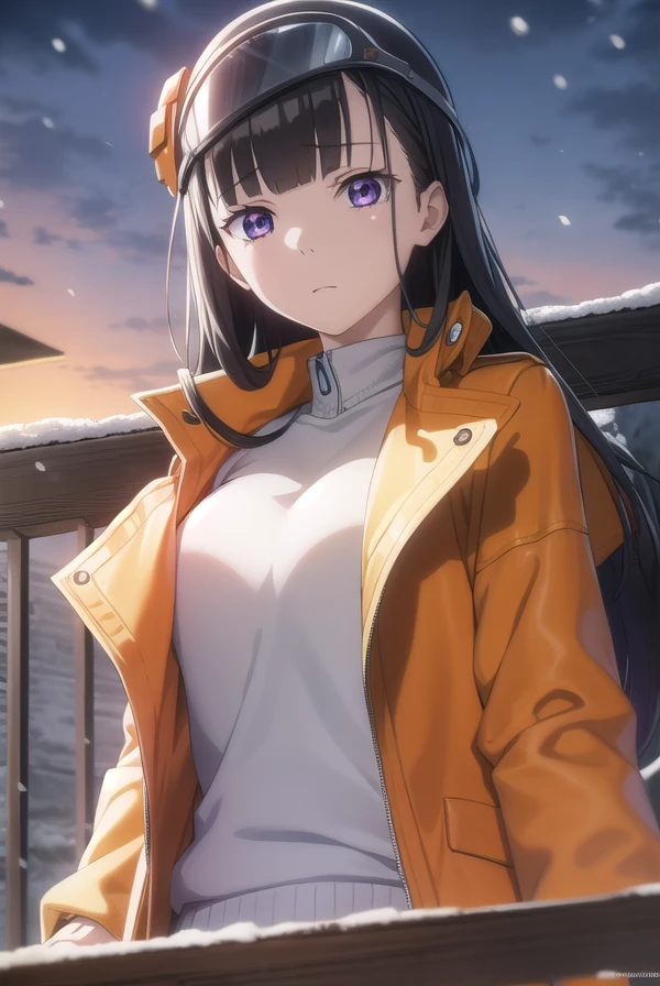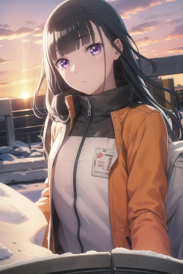 shirase kobuchizawa, long hair, black hair, red eyes, purple eyes,