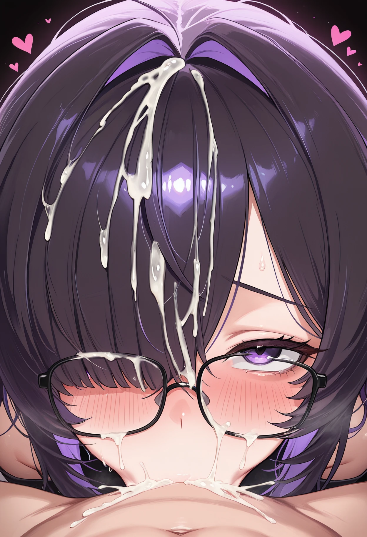 label \(nikke\), absurdly long hair, black hair, hair over one eye, messy hair, multicolored hair, purple eyes, purple hair, two-tone hair,bags under eyes