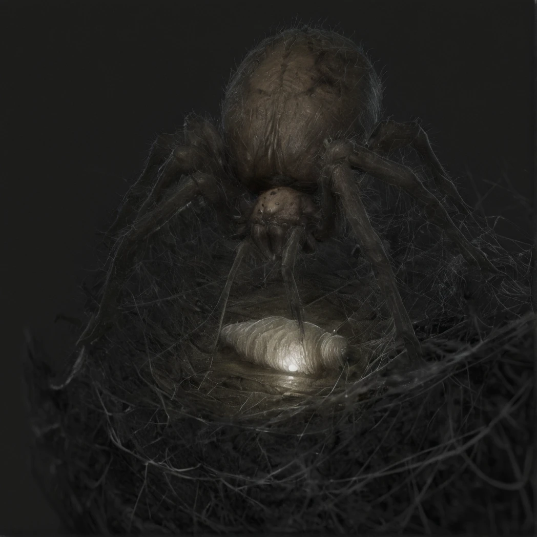 Carrying babies Spiders on its back, Spider hatchlings, Spider cocoon, person in a cocoon, Eight legs, four on each side,"