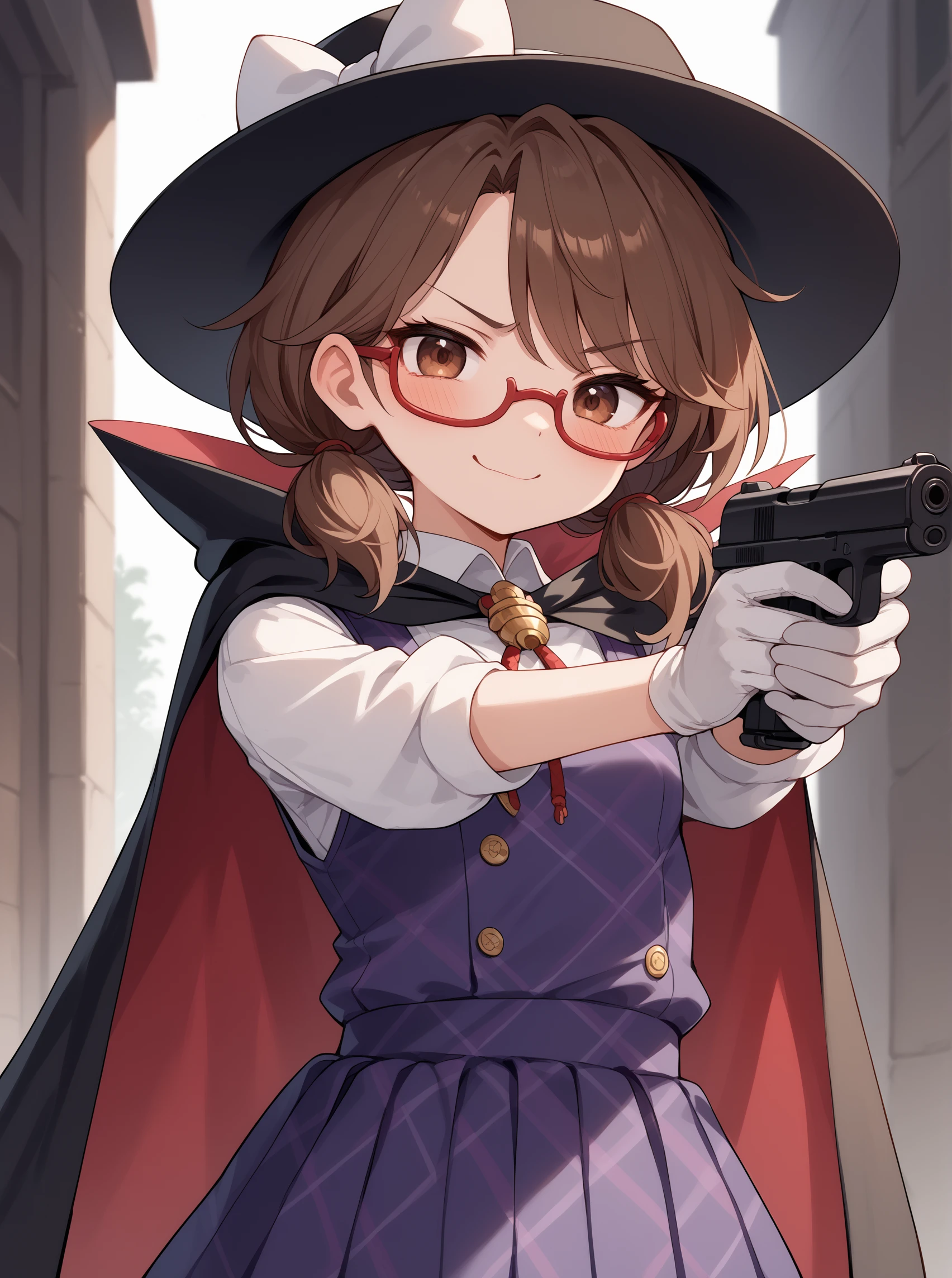 bow hat, black cape