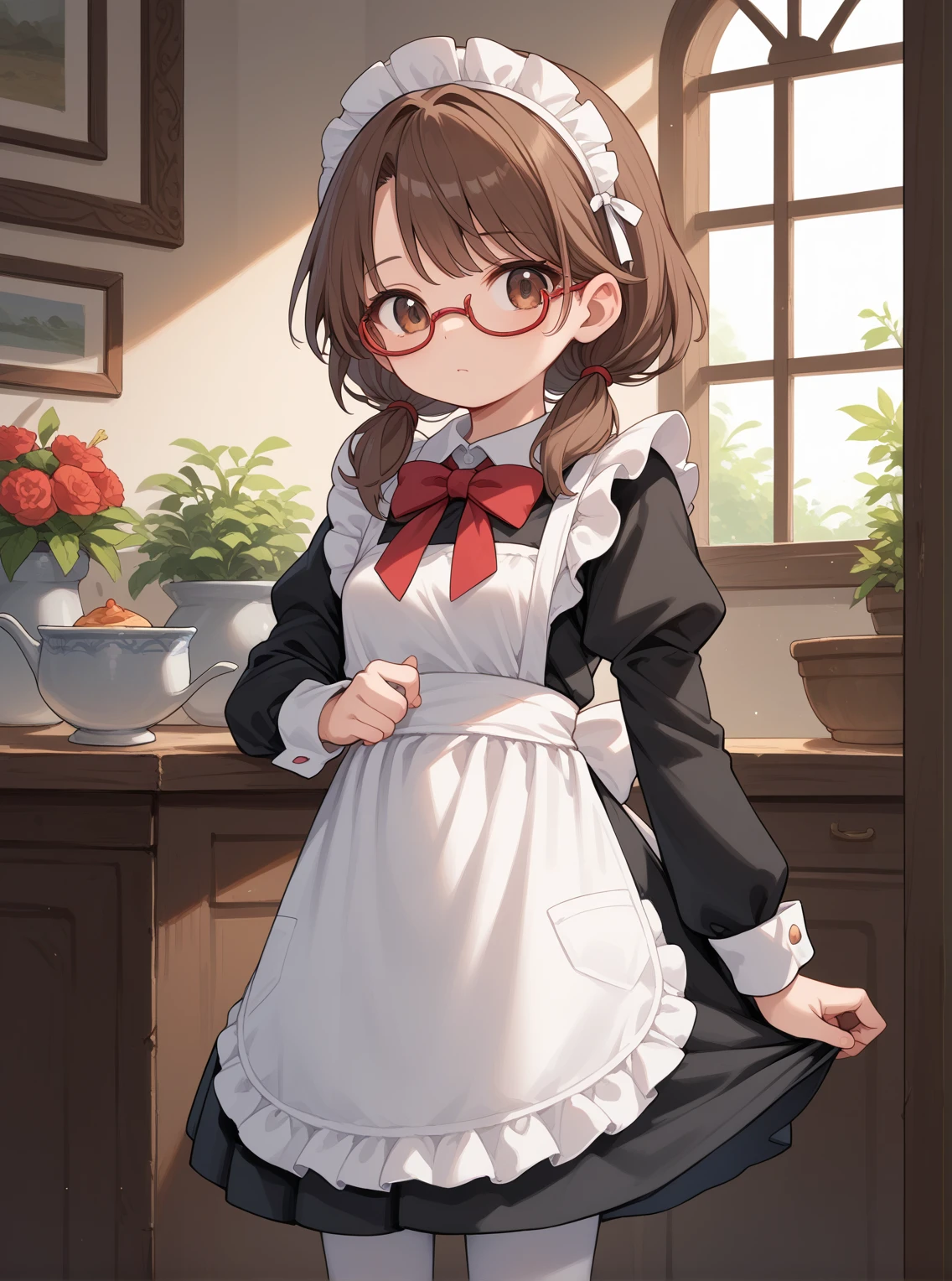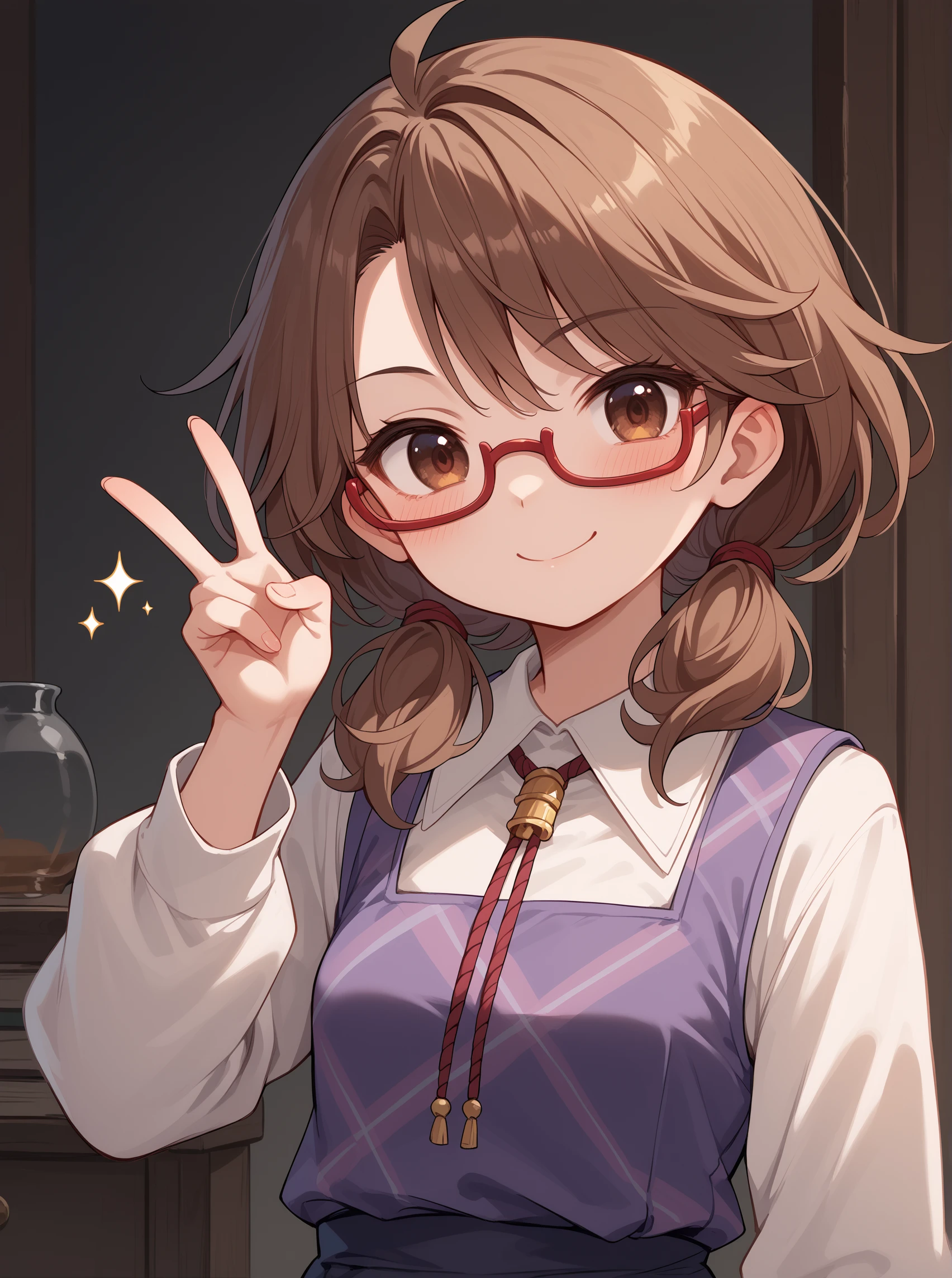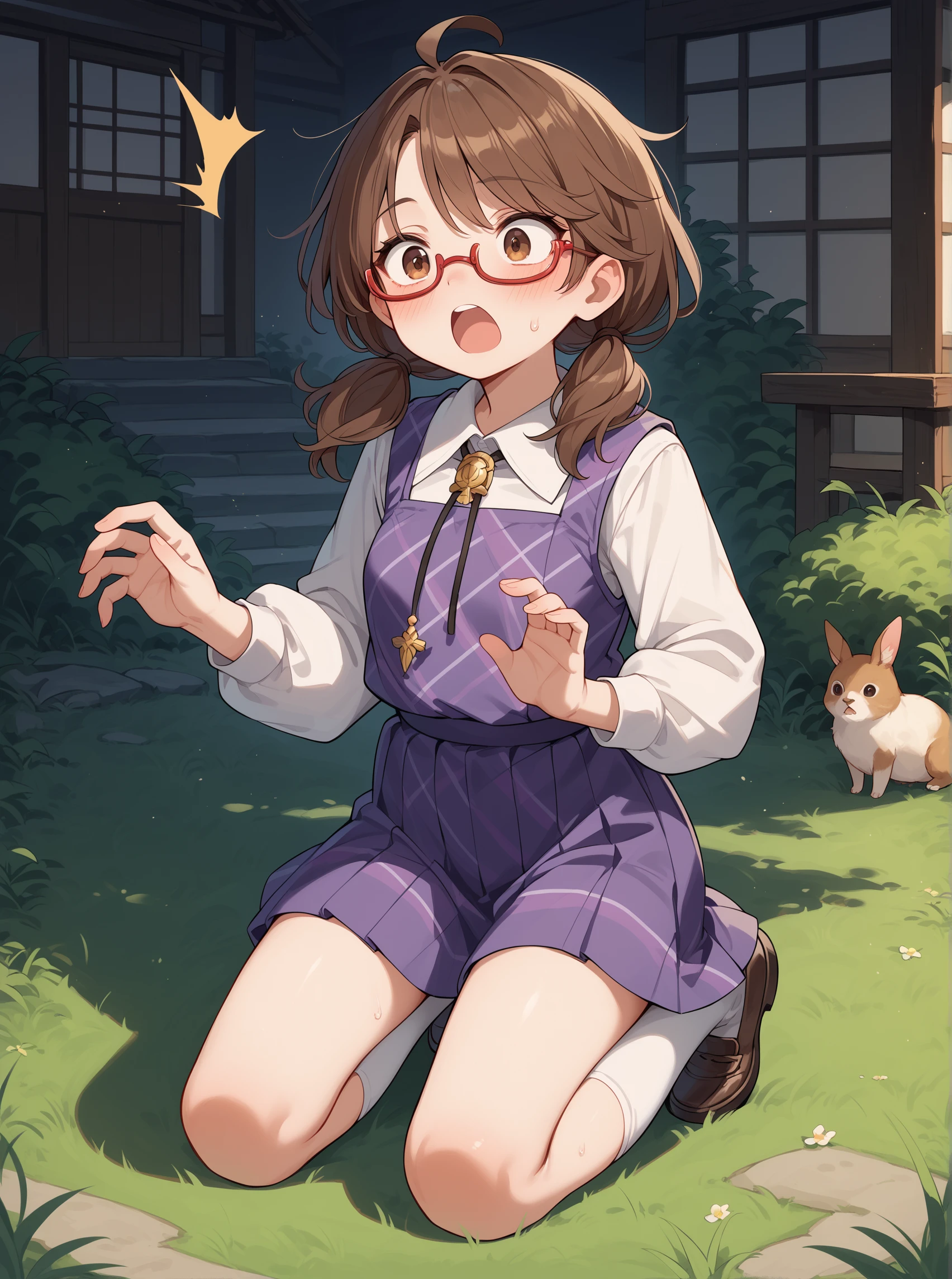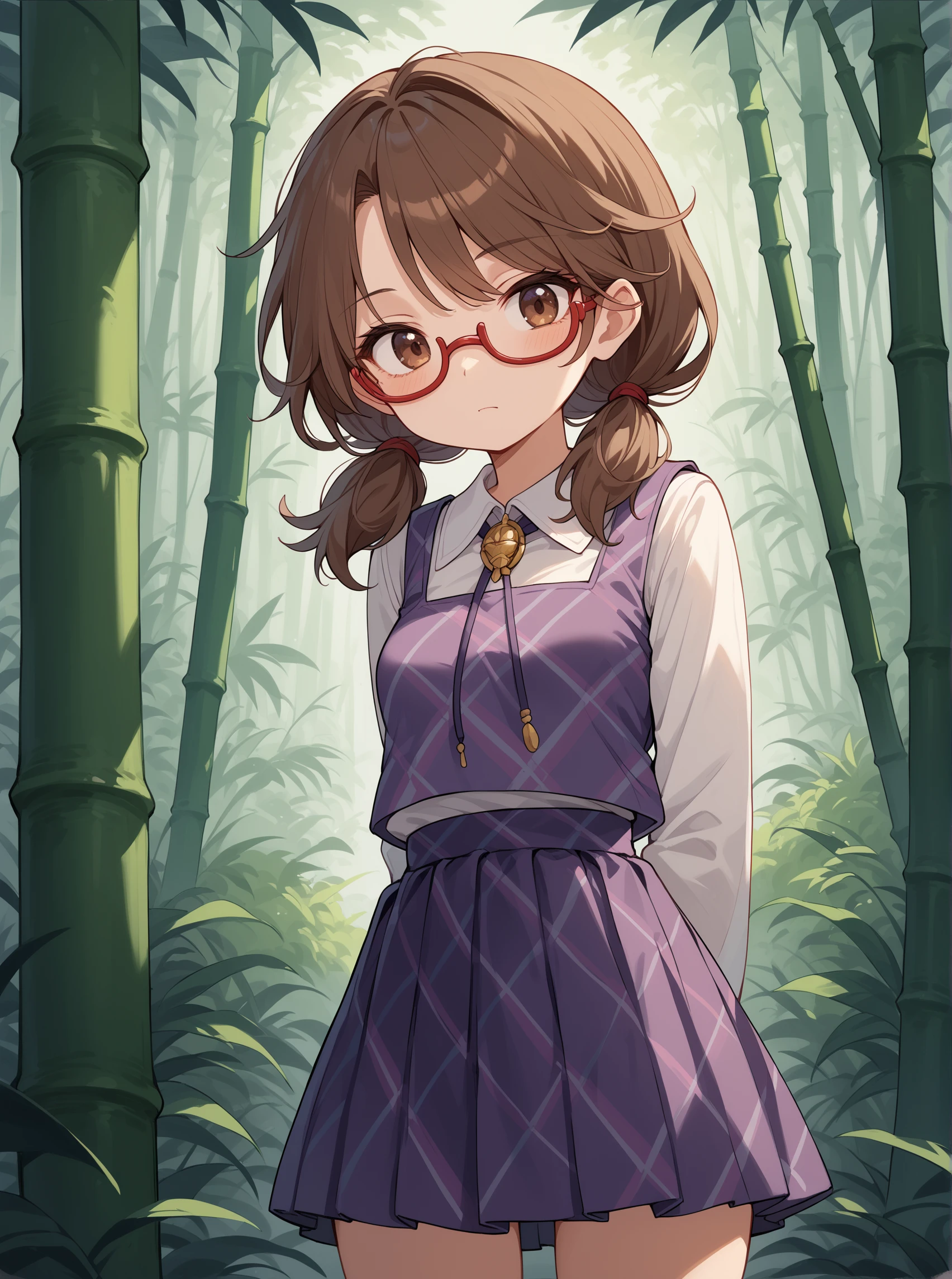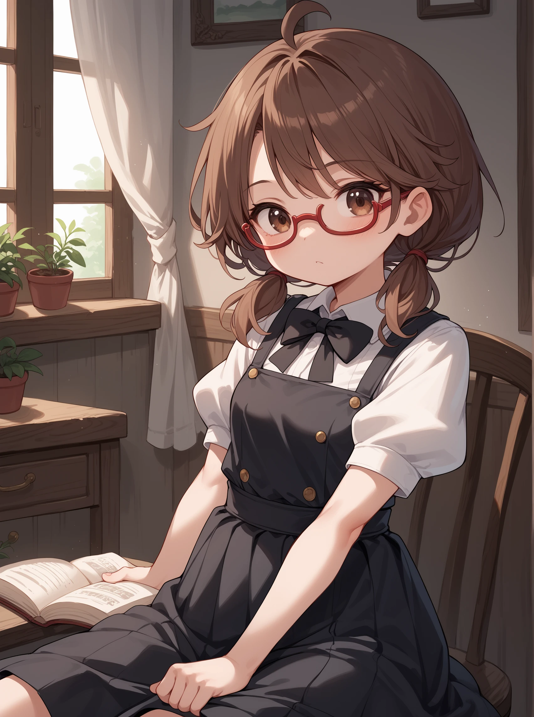 UsamiToho, brown hair, brown eyes, glasses,bangs, low twintails,