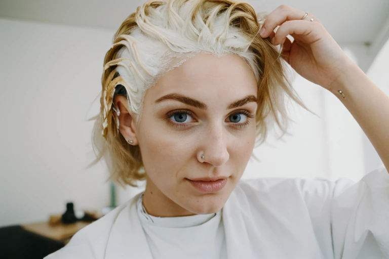 girl getting her hair bleached