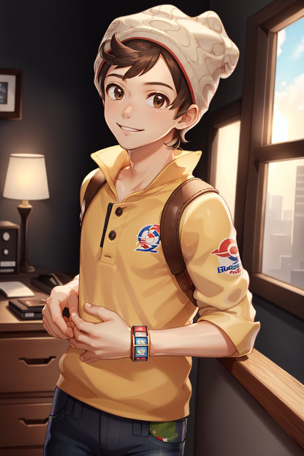 Default Outfit: beanie, red shirt, sleeves rolled up, pants