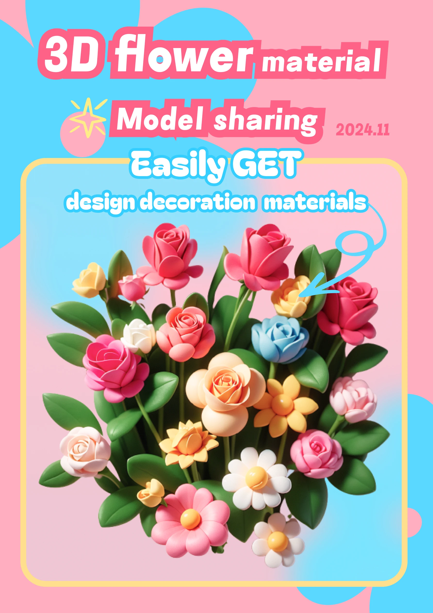 Flower material, can stably generate 3D clay material flowers, such as flower pots, vases, bouquets, flower patterns for graphic design embellishment materials. Welcome to try various flower effect return pictures