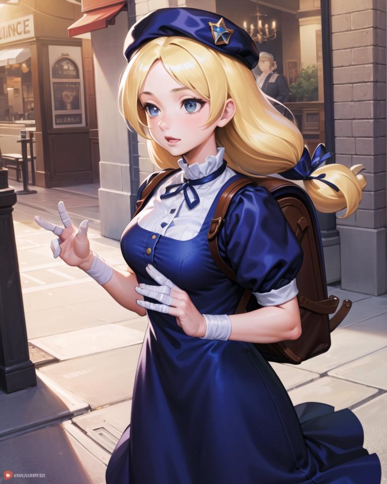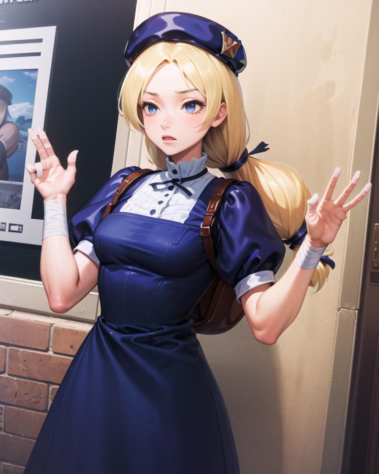 hinakoms, hat, dress, beret, bandages, backpack , ribbon, knee pads, short sleeves