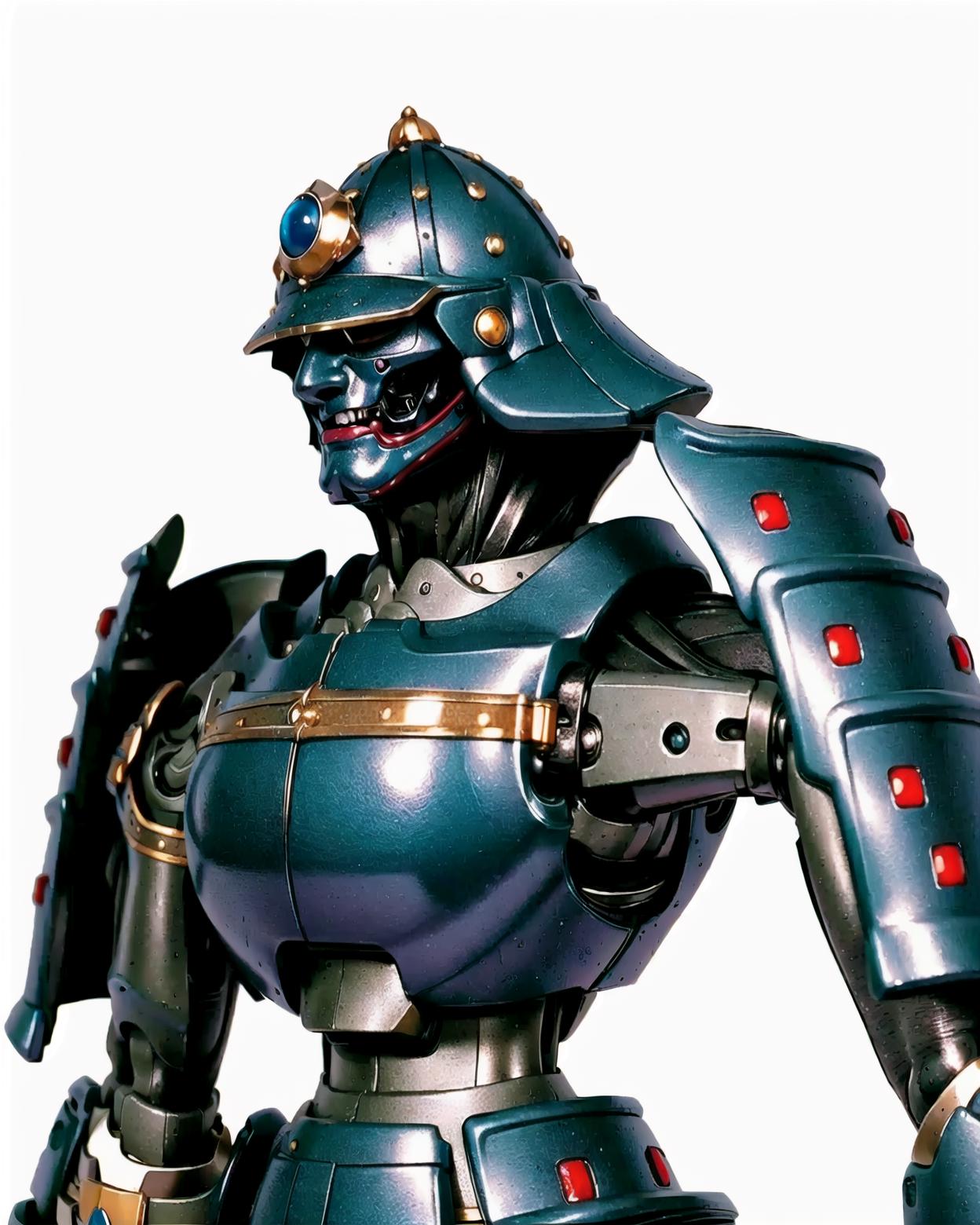아마 katana(sengoku blade), sengoku blade, android, helmet 등의 프롬프트로(Trigger Word) 이 로봇 캐릭터의 그림을 생성하실 수 있겠습니다. 바지 같은 디테일한 묘사를 원하면 kabuto, kusazuri, baggy pants 등을 추가하시면 100%는 아니더라도 반영이 될 것으로 생각됩니다.