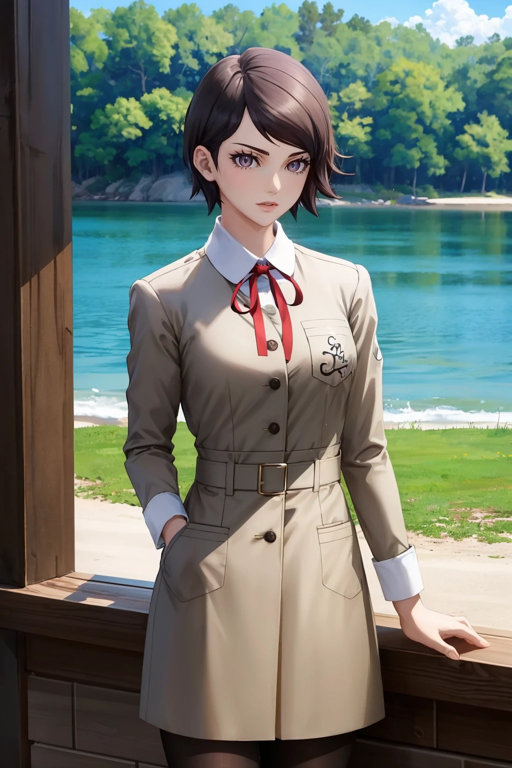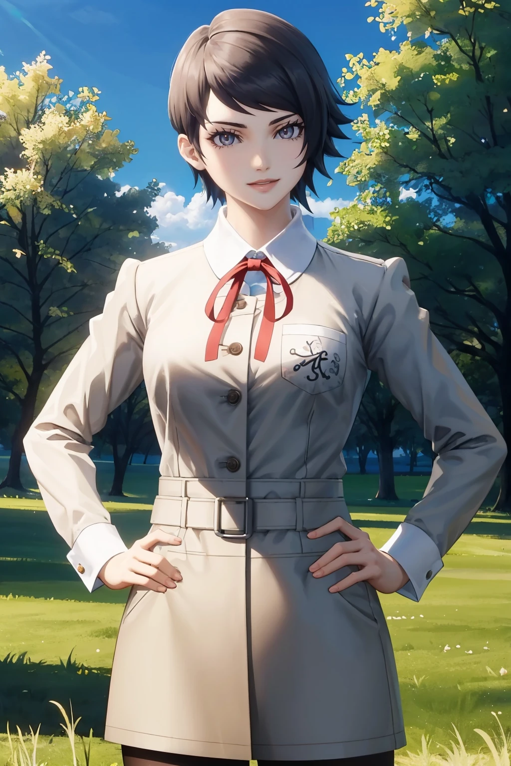 tags: yukosmtvv, short hair, school uniform, neck ribbon, skirt, pantyhose