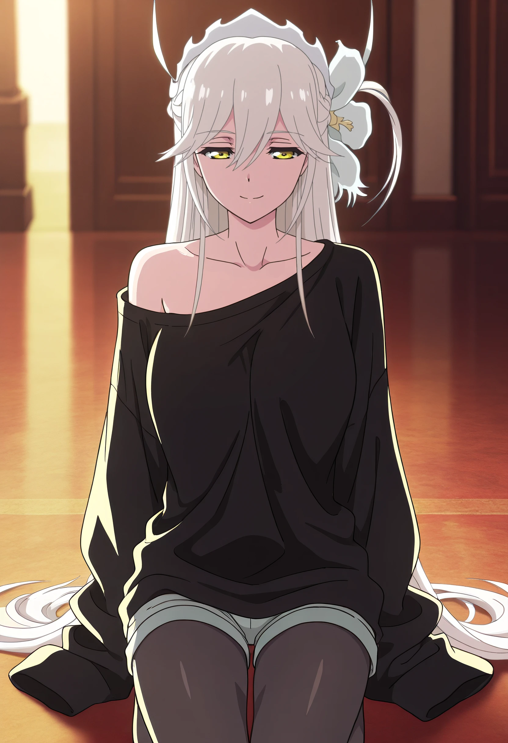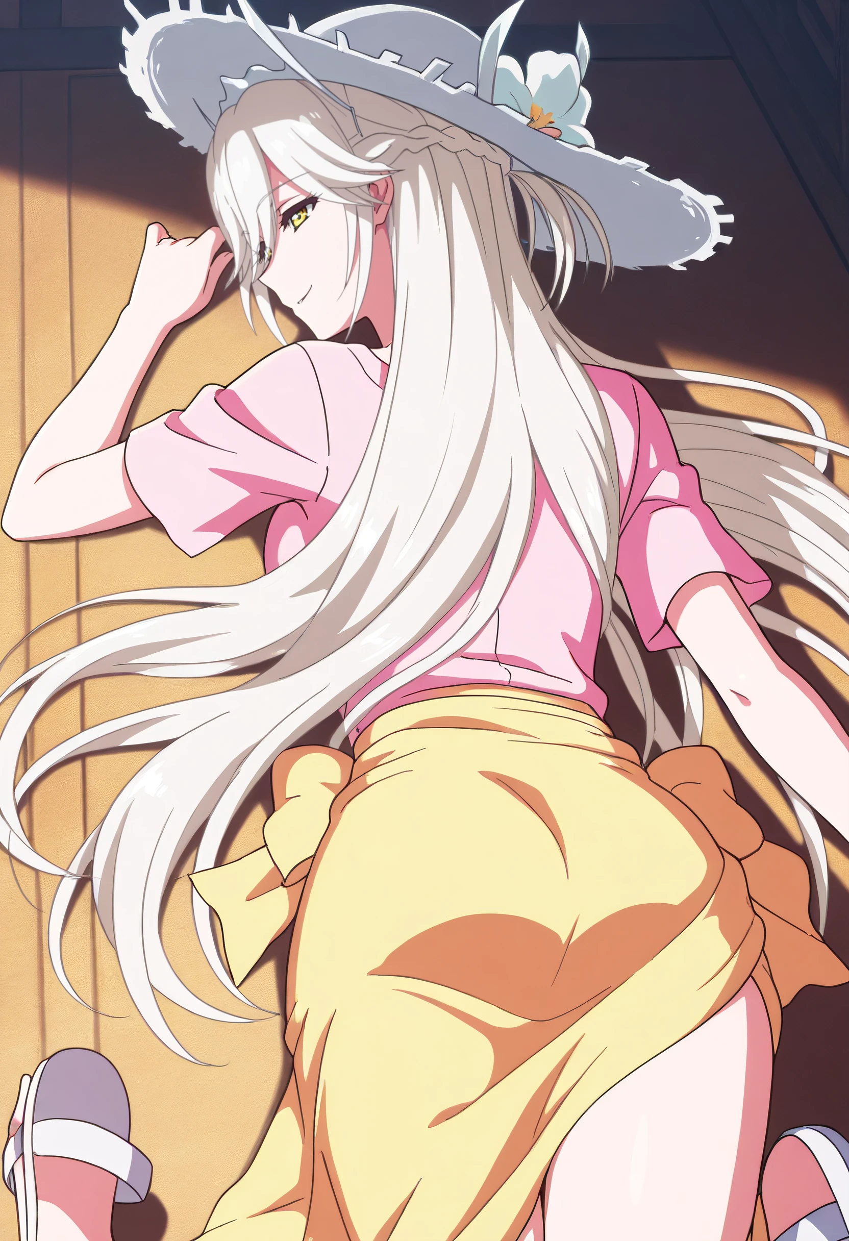 FFrVicius, long hair, hair between eyes, bangs, eyebrows visible through hair, yellow eyes, very long hair, silver hair, braid,