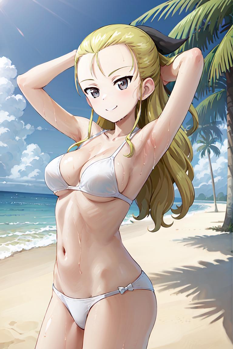 Assam detail tag: girls und panzer, assam, hair pulled back, sidelocks, hair ribbon