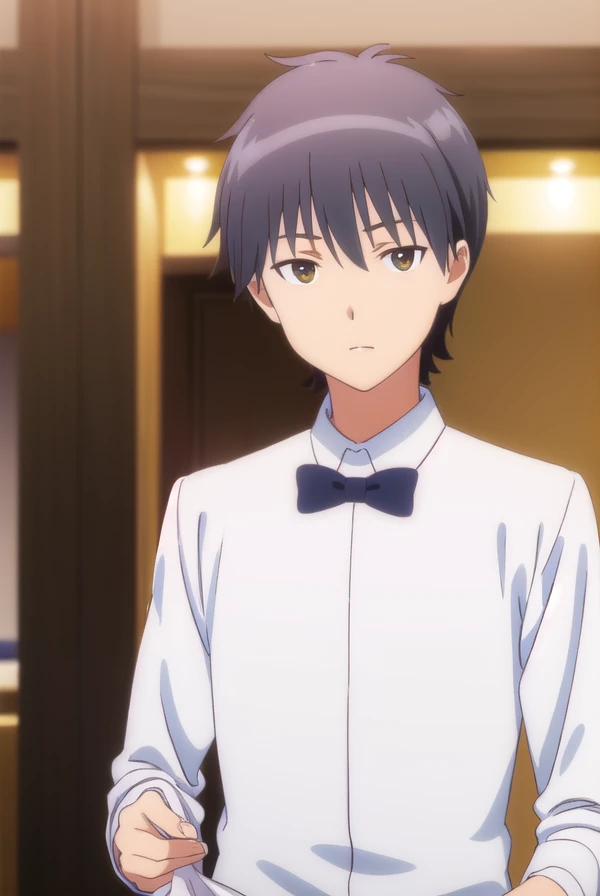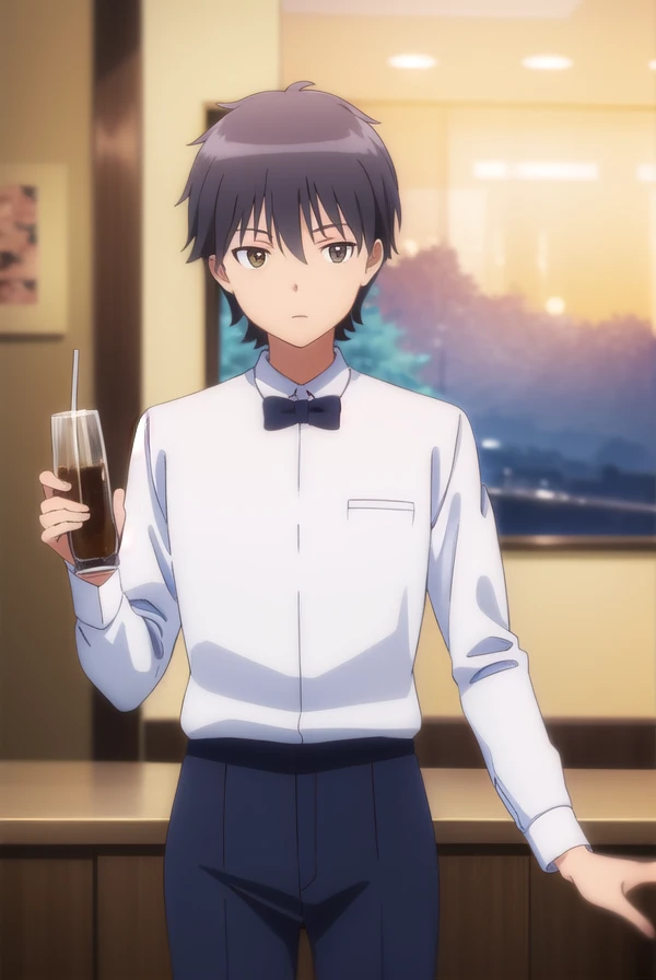shirt, bow, pants, bowtie, black bow, waiter,