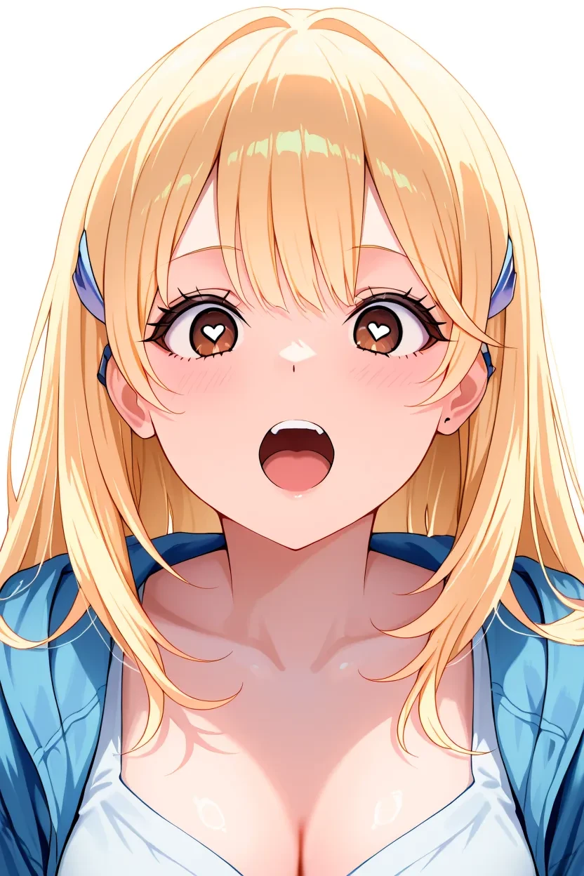 1girl, Tia, brown_eyes, blonde_hair, long_hair, massive_breasts, curvy, sexy, wide hips, thick thighs, shirt, jacket, skirt, thigh highs, white thighs