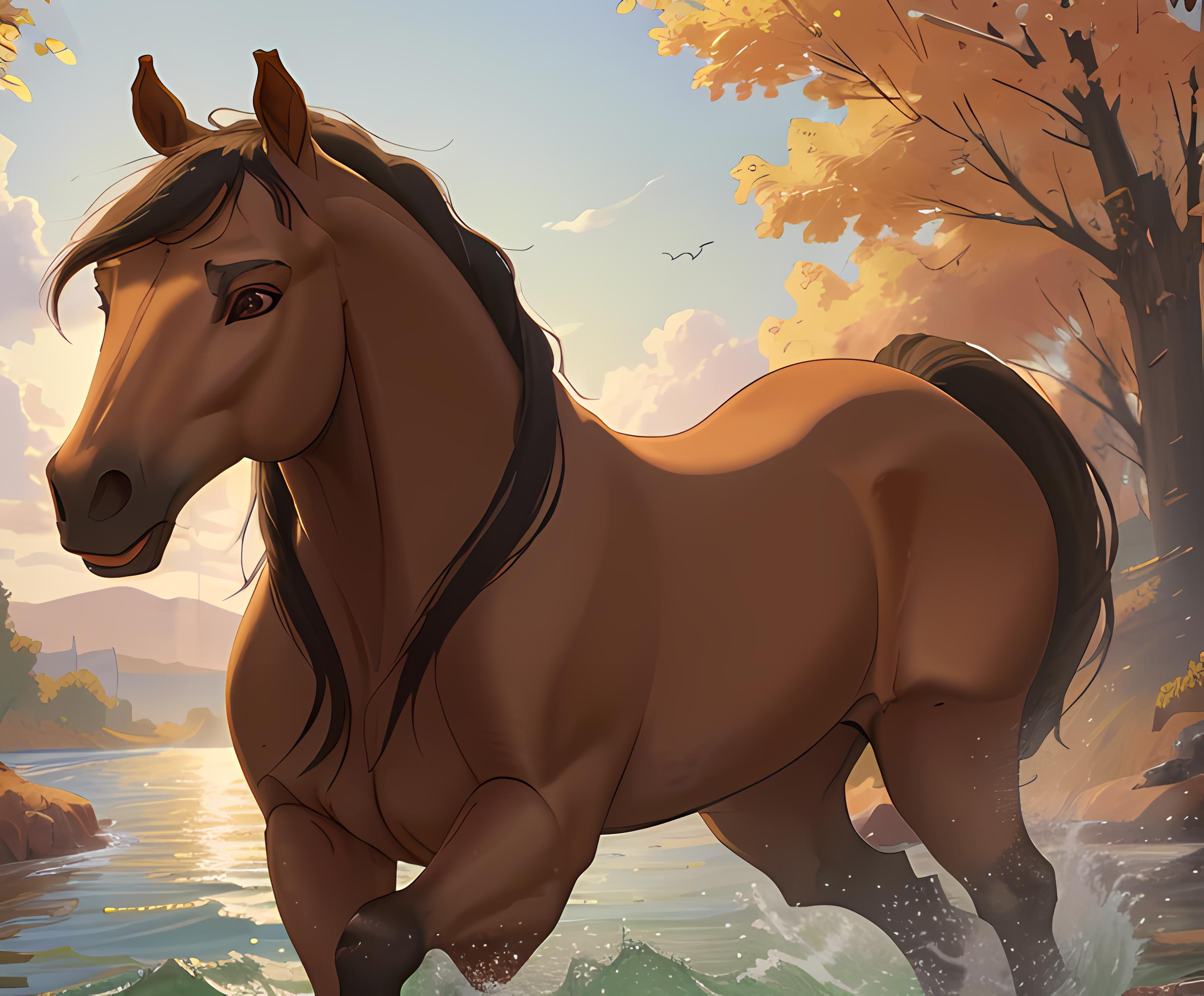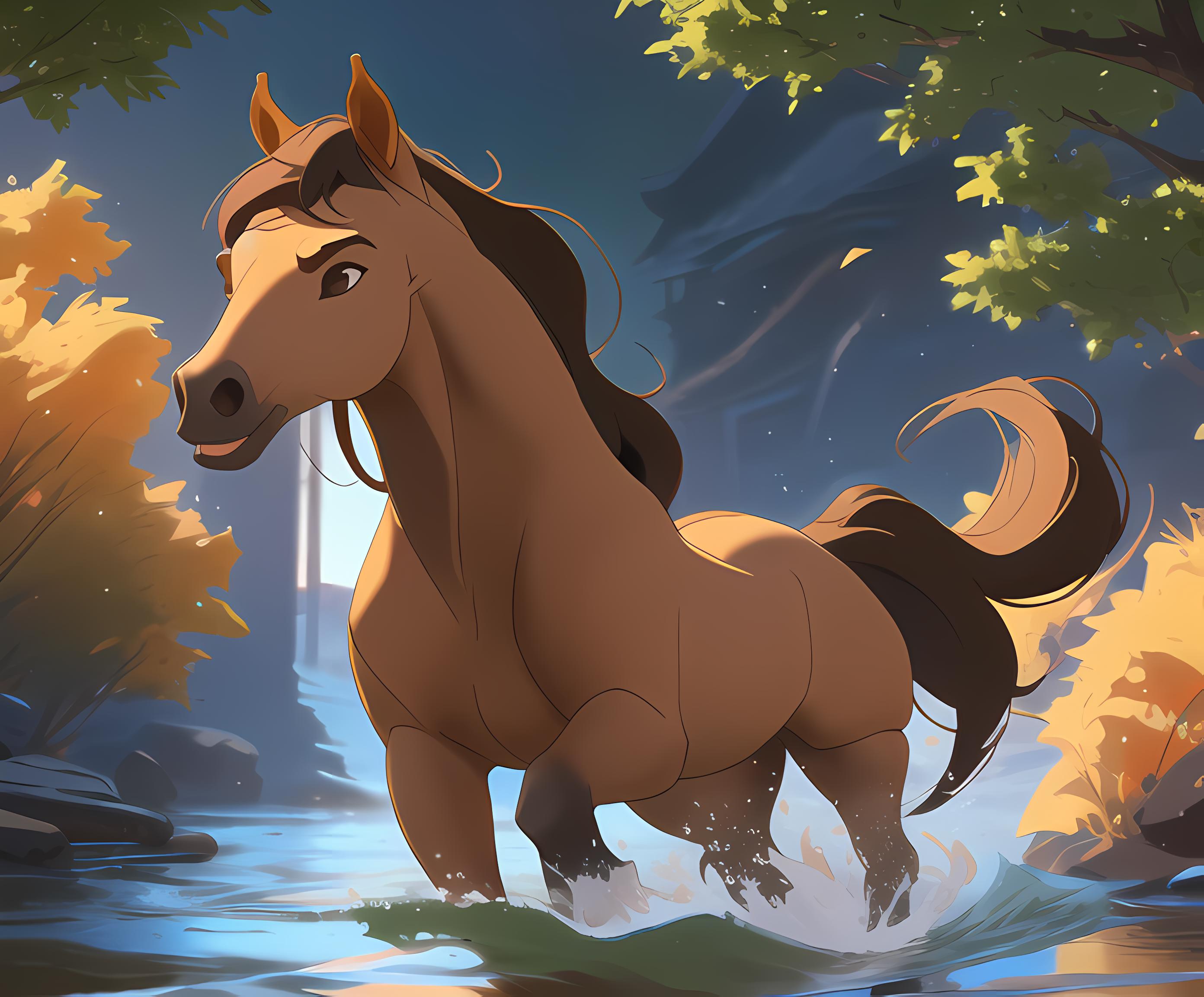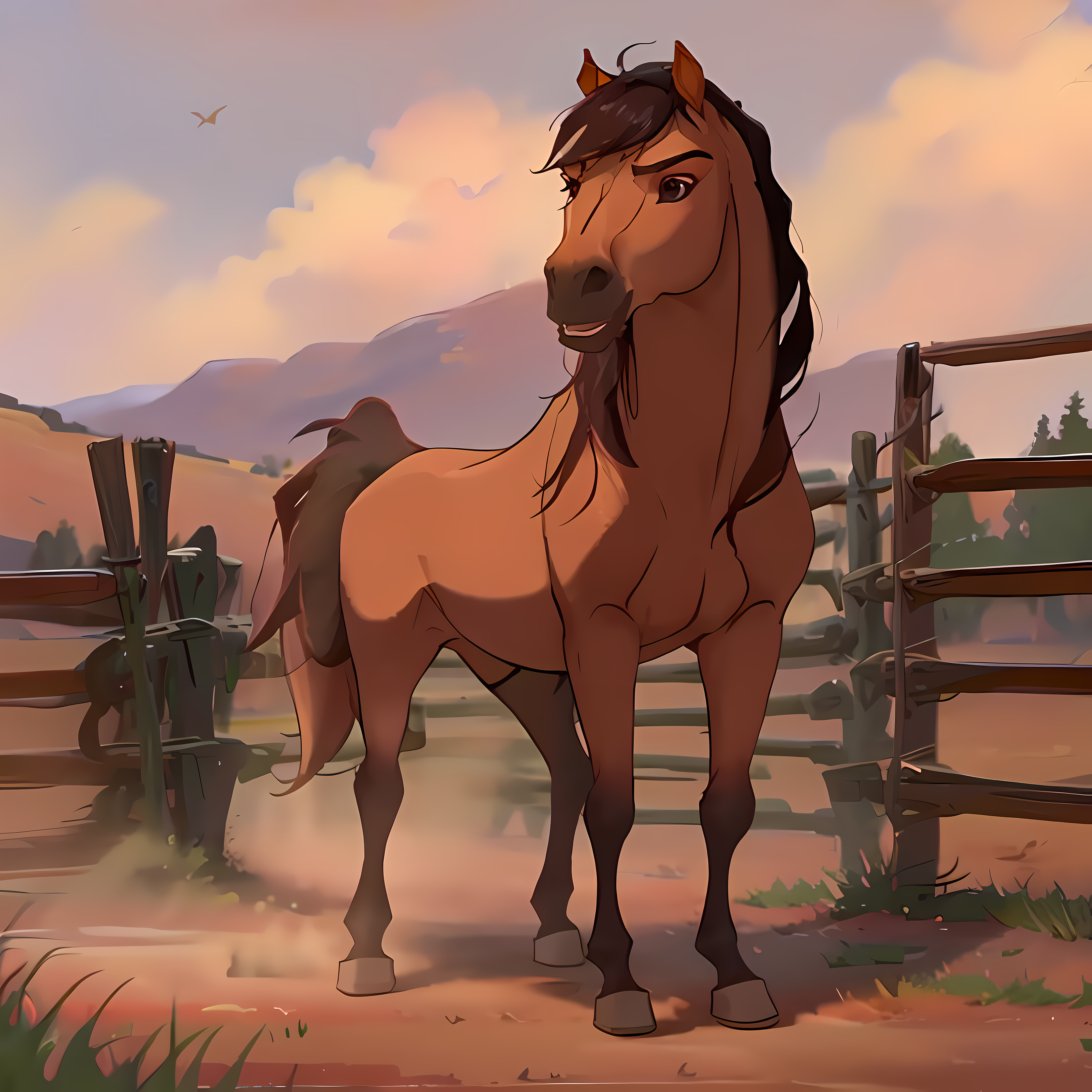 With this LoRA you can generate images with Spirit from 2002 Dreamworks animated film (Spirit: Stallion of the Cimarron).