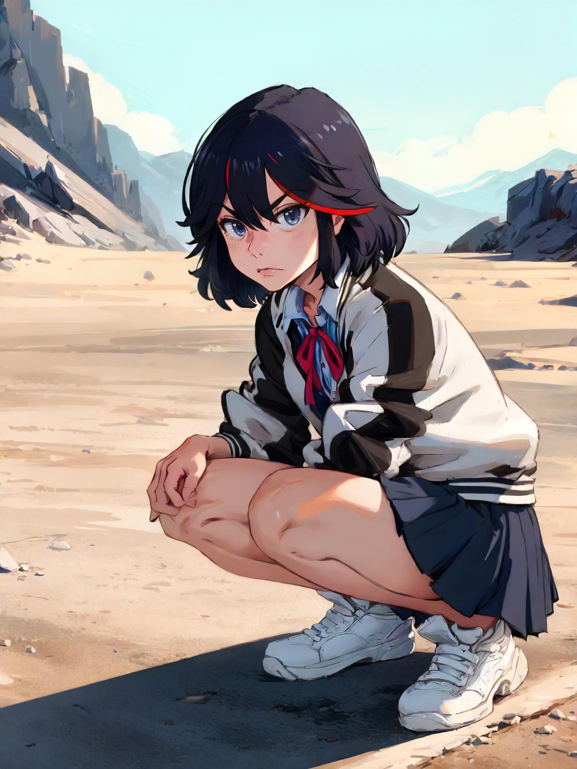 Character: Matoi Ryuuko, streaked hair, blue eyes