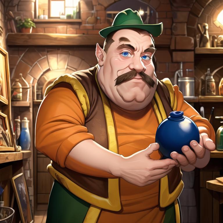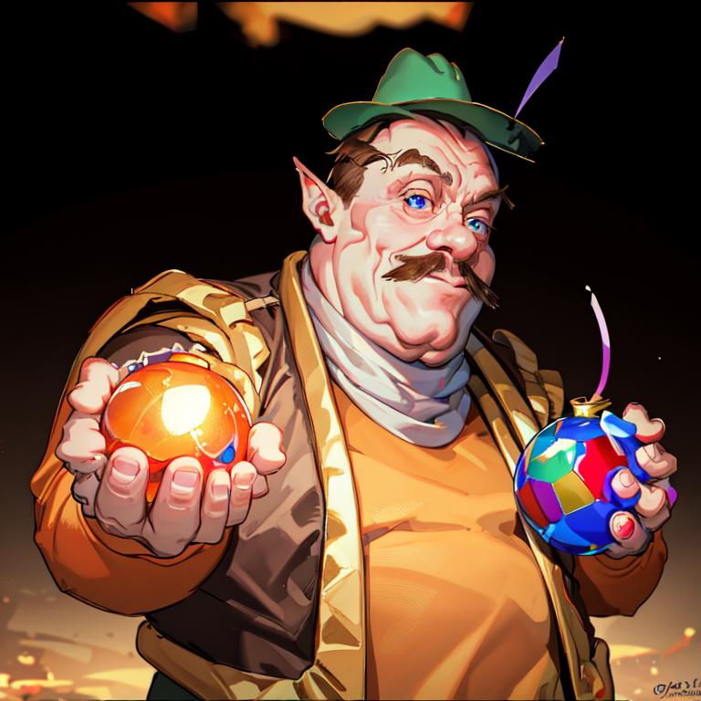 don't expect too much flexibility. its morshu after all. all the dataset is him holding a bomb or with his hands together