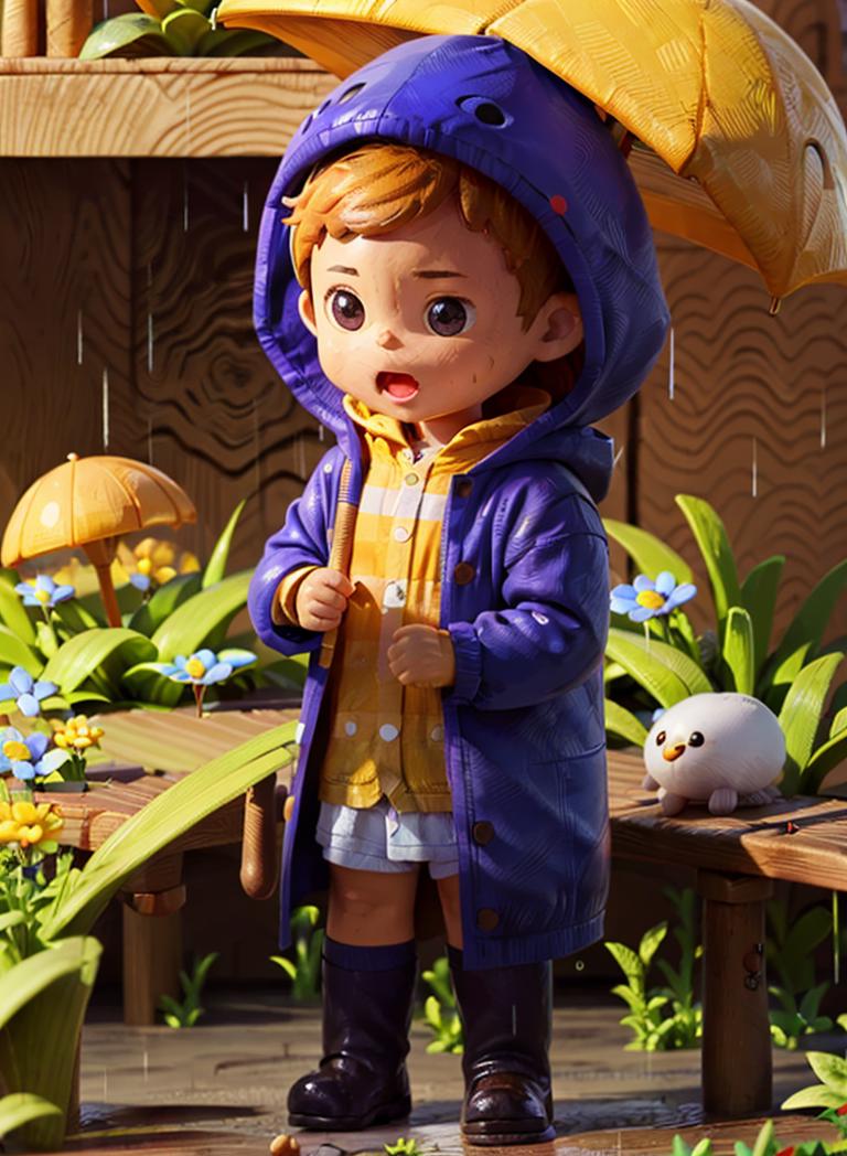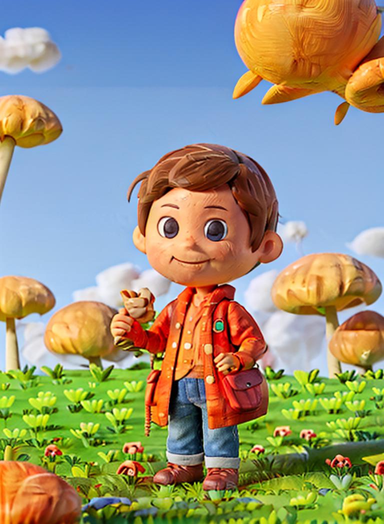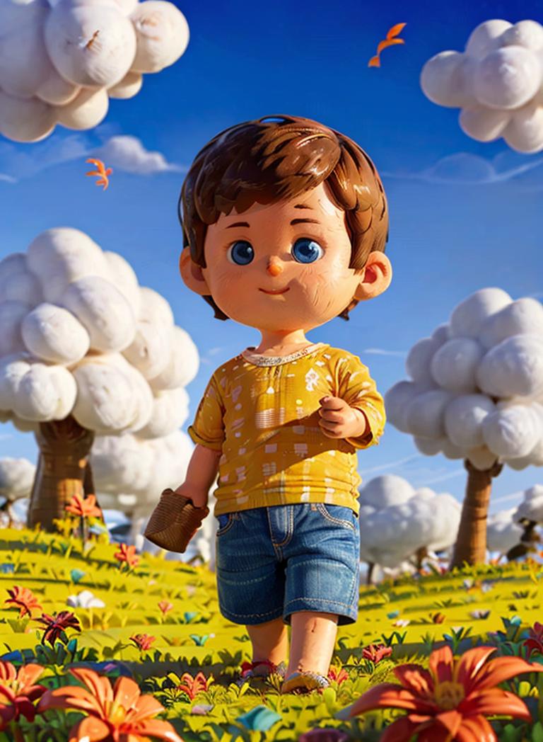 For example 1 boy, meadow, outdoor, sky, short hair, single, day, flower, cloud, grass, leaf, smile, masterpiece, best quality, chibi simple background...