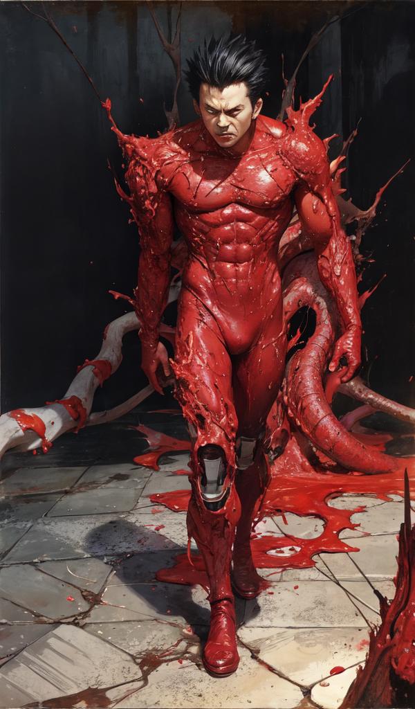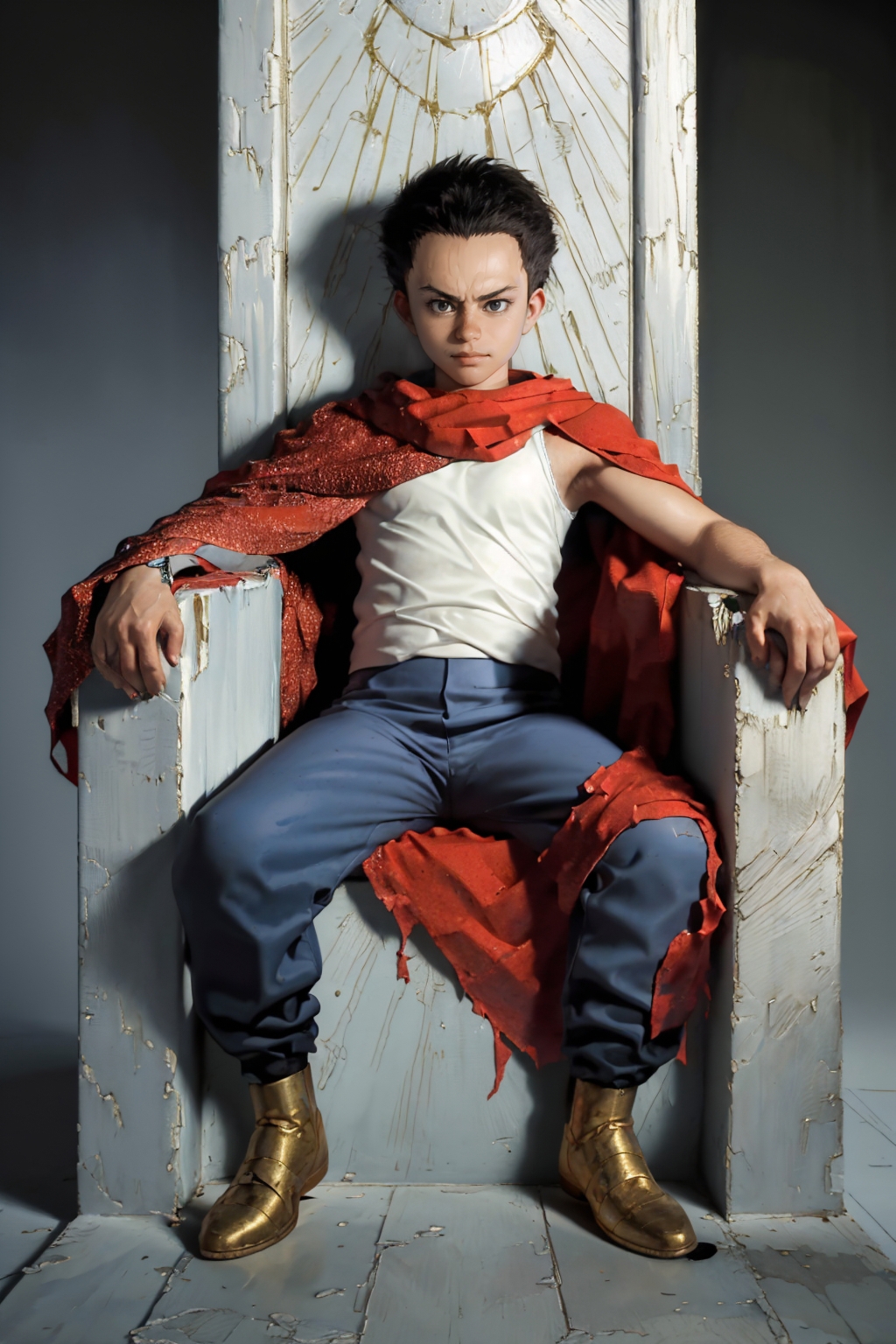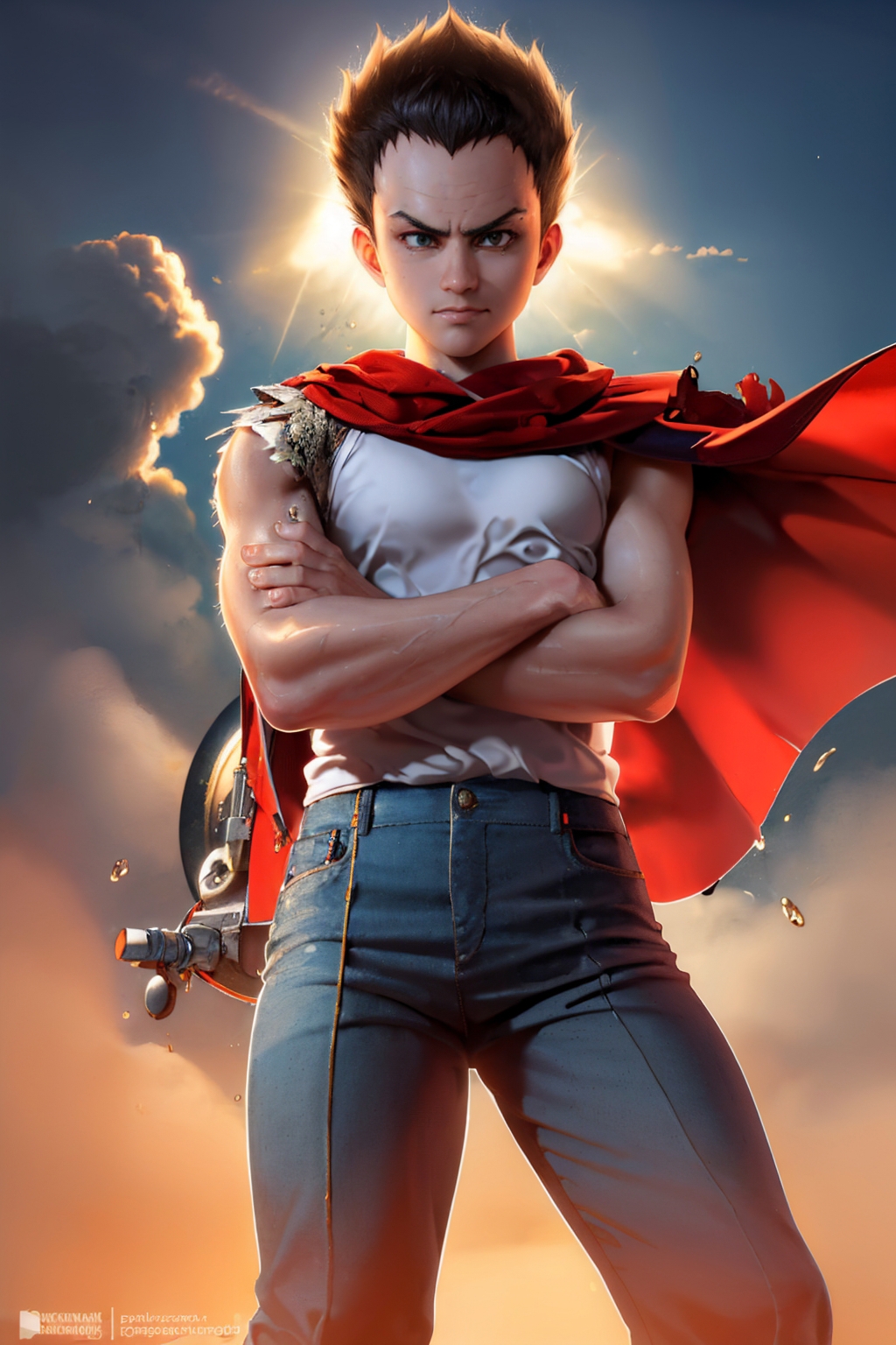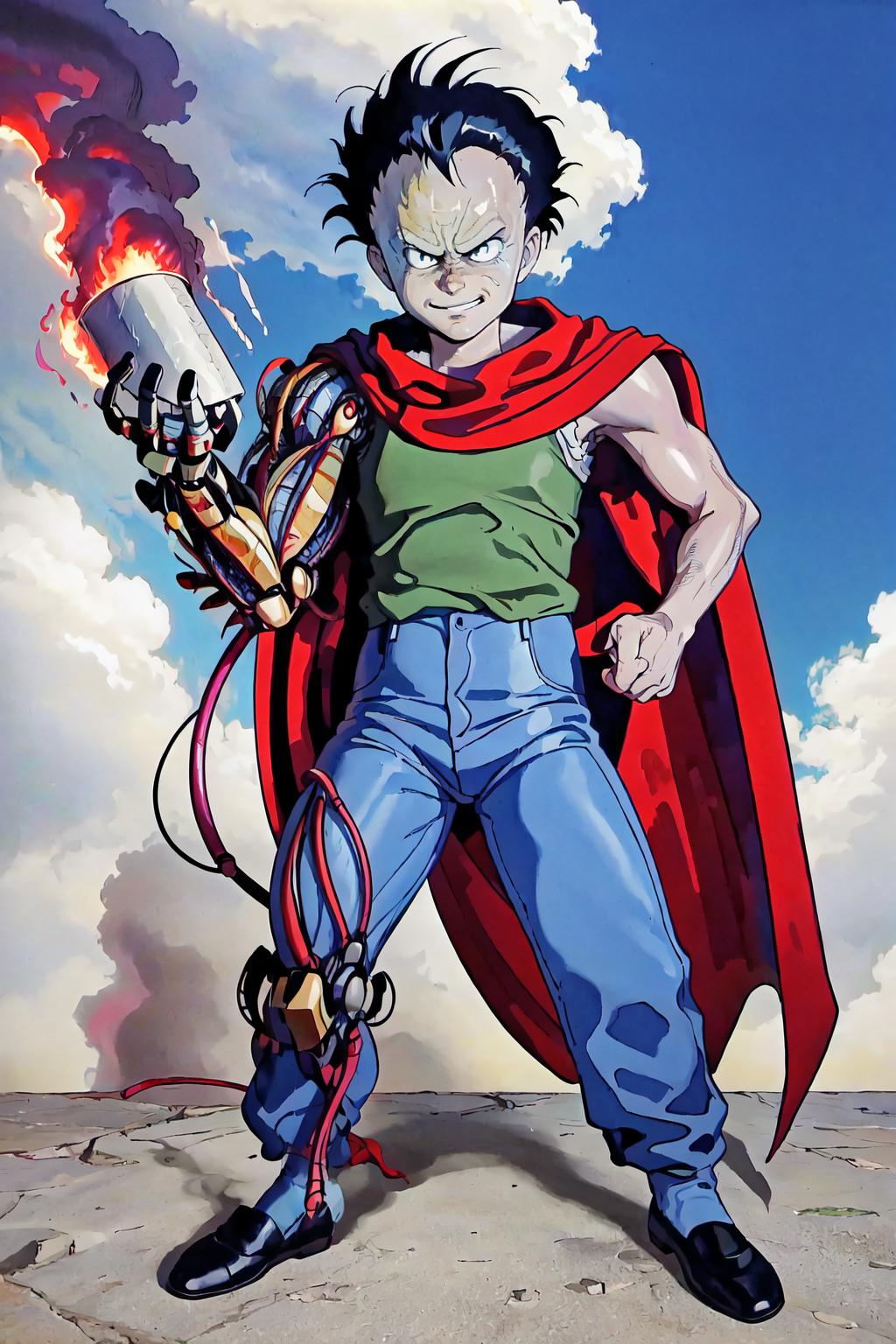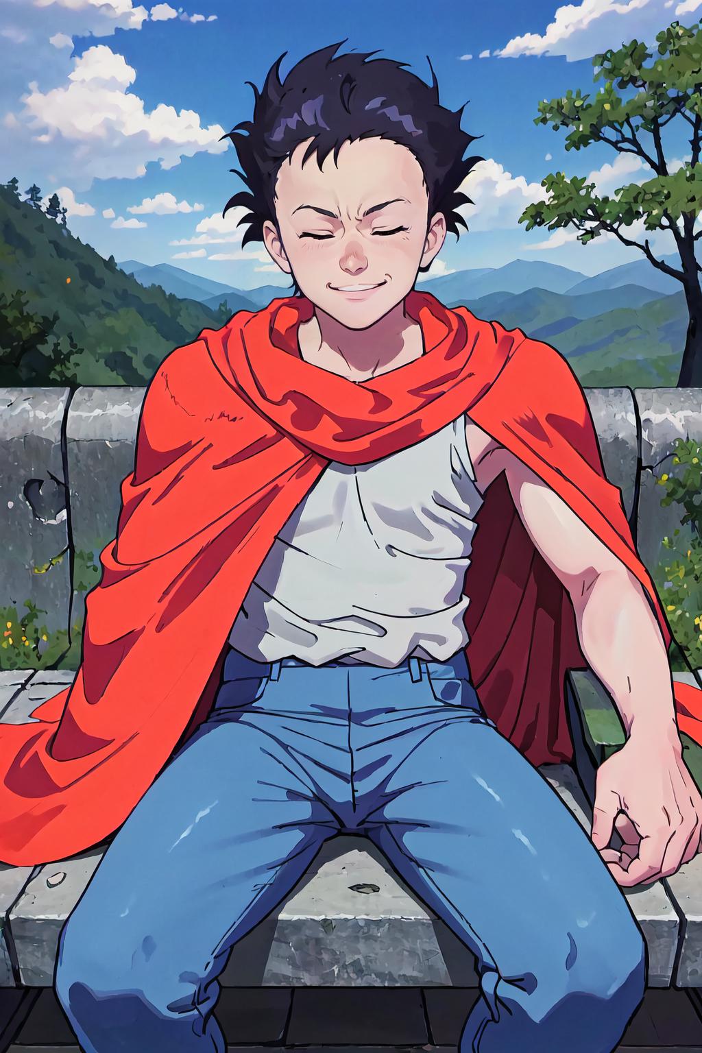 Default Outfit: tank top, red cape, blue pants