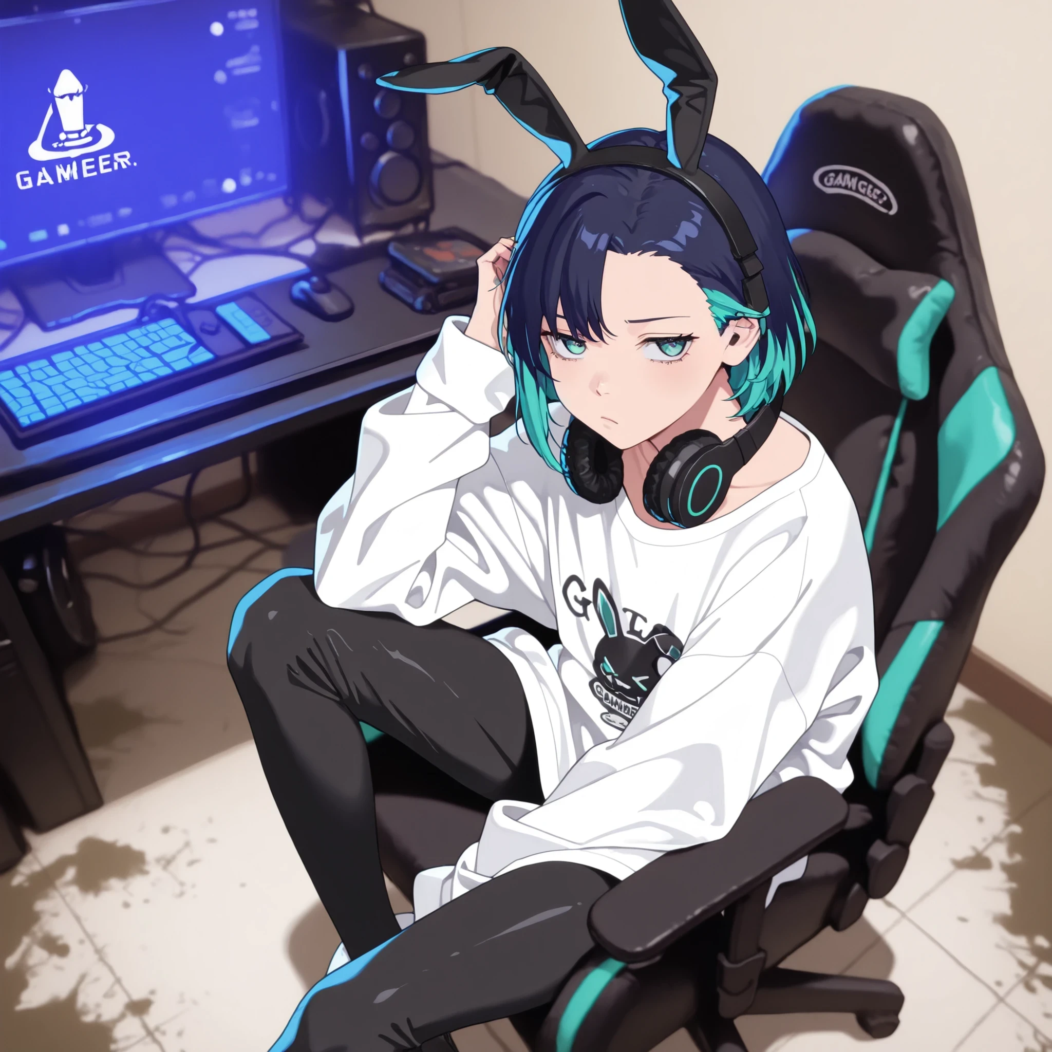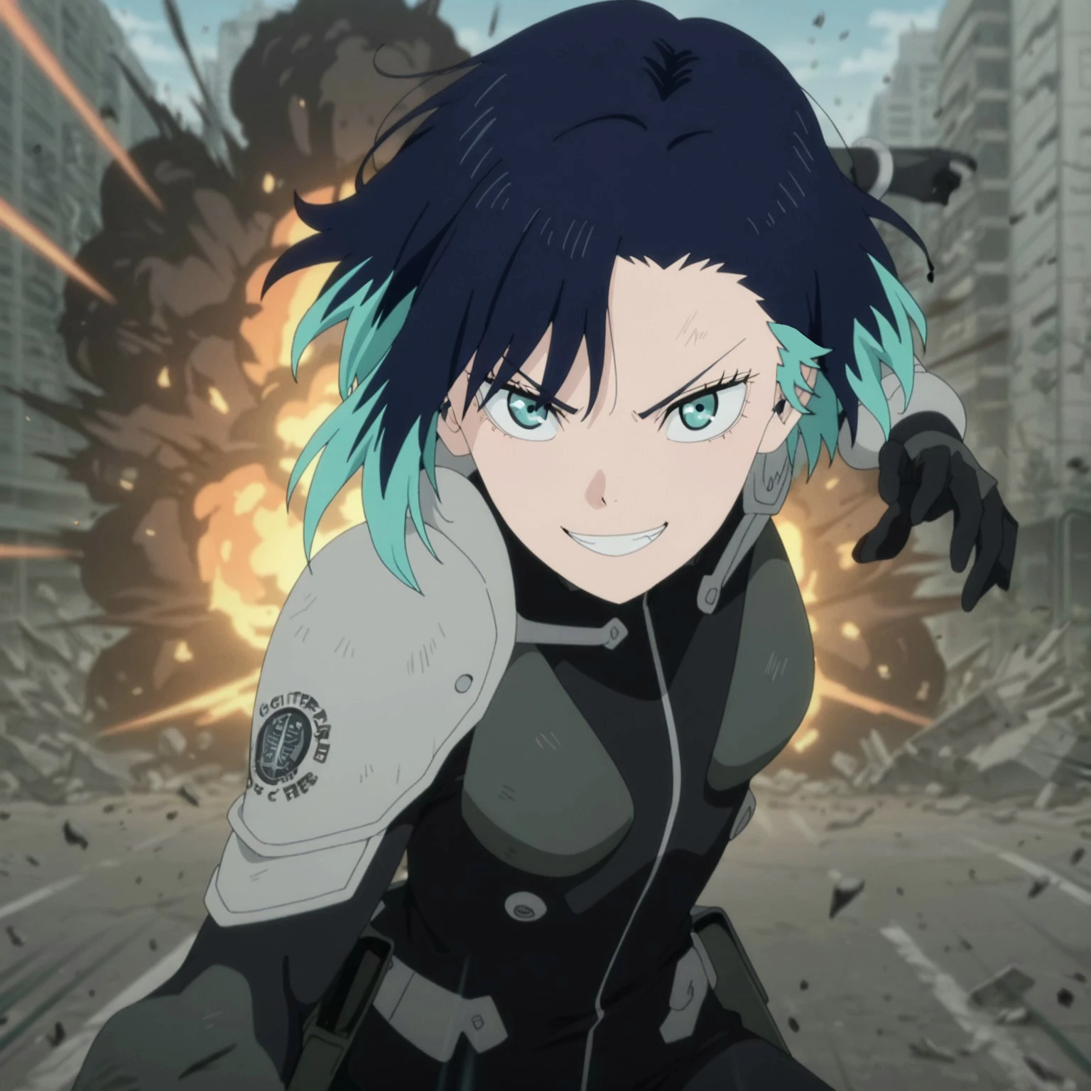 Trigger Words: Shinonome Rin, two-tone hair, short hair, bodysuit, shoulder pads,