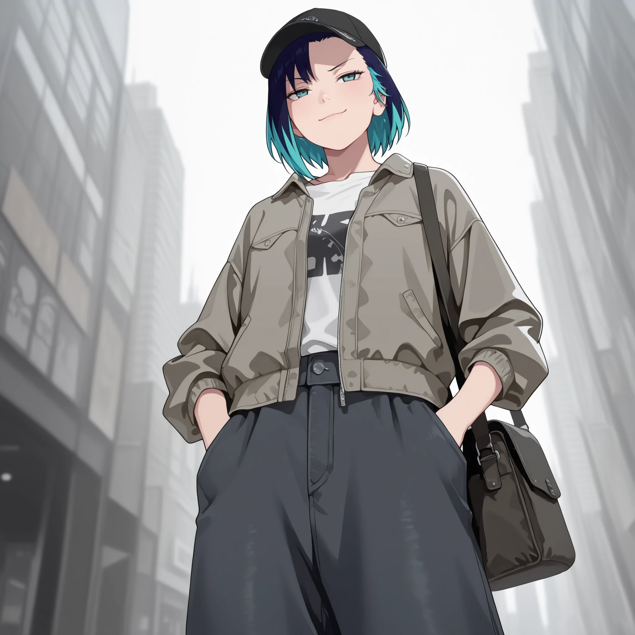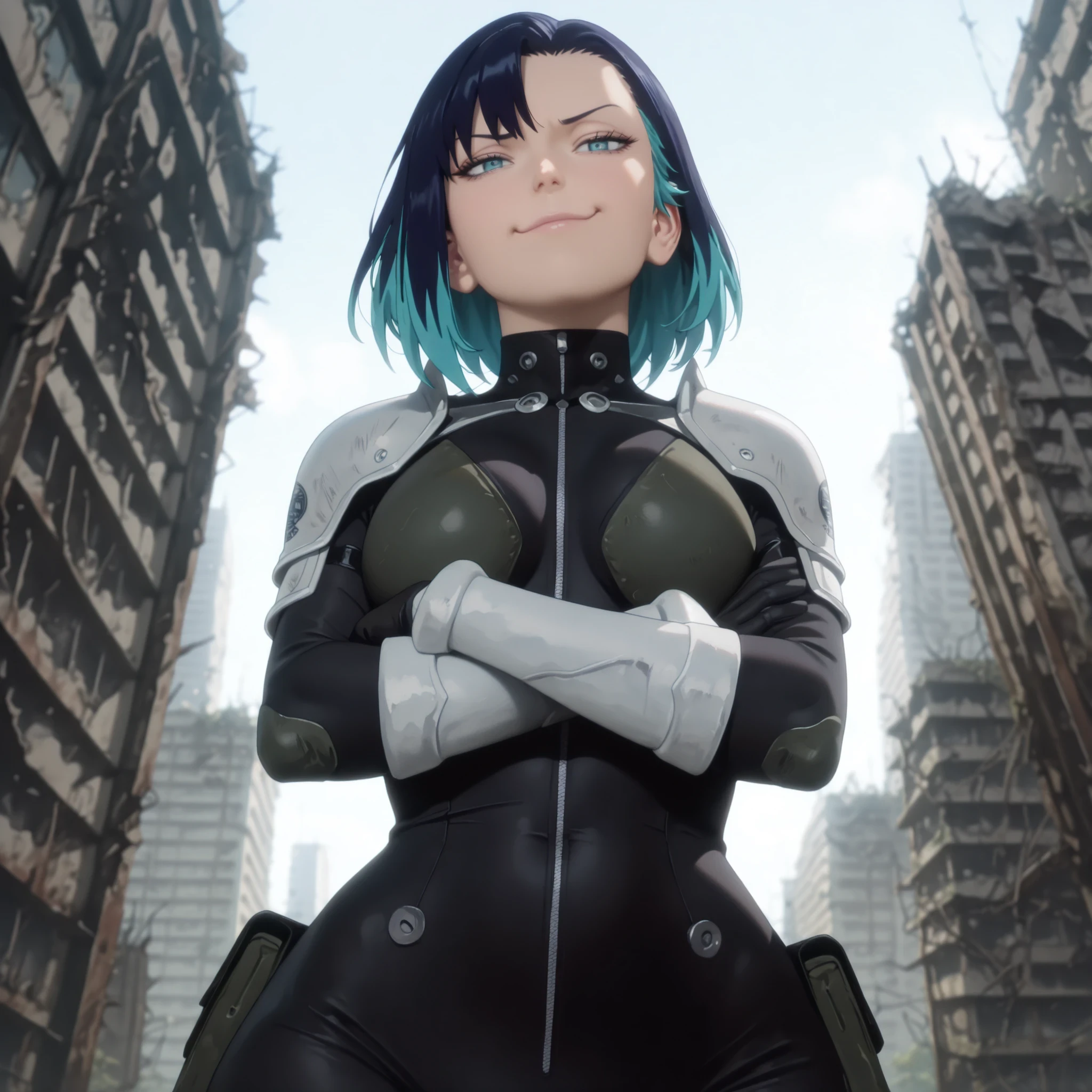 Shinonome Rin, two-tone hair, short hair, bodysuit, shoulder pads,