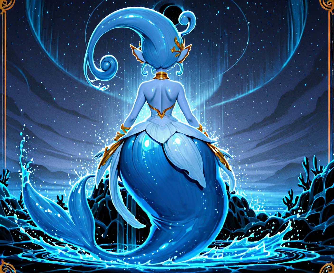 Esna, Mermaid, Light blue skin, light blue eyes, blue hair,