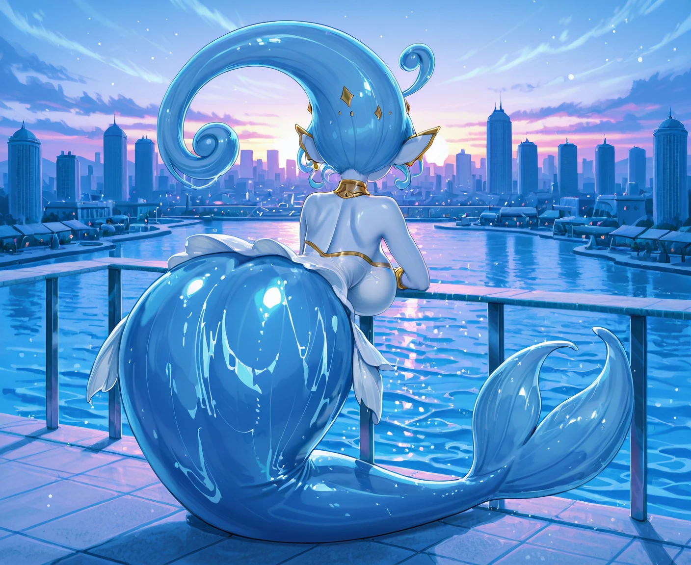 (Huge mermaid tail, bottom heavy, wide hips, legless, no legs, no feet),