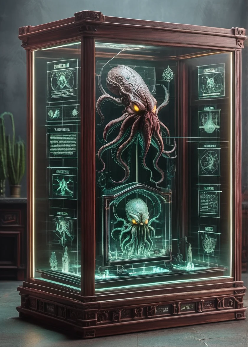 A shortcut LoRA for achieving a specific aesthetic of display case. You can mostly get it with enough prompt words, but this is so much quicker. Just prompt "display case for [thing]" and add a couple optional descriptions of the display case or the environment. I.e., "display case with a rounded base for ..." or "display case with rounded base and bell jar top for ... " and "minimal darkened studio environment".