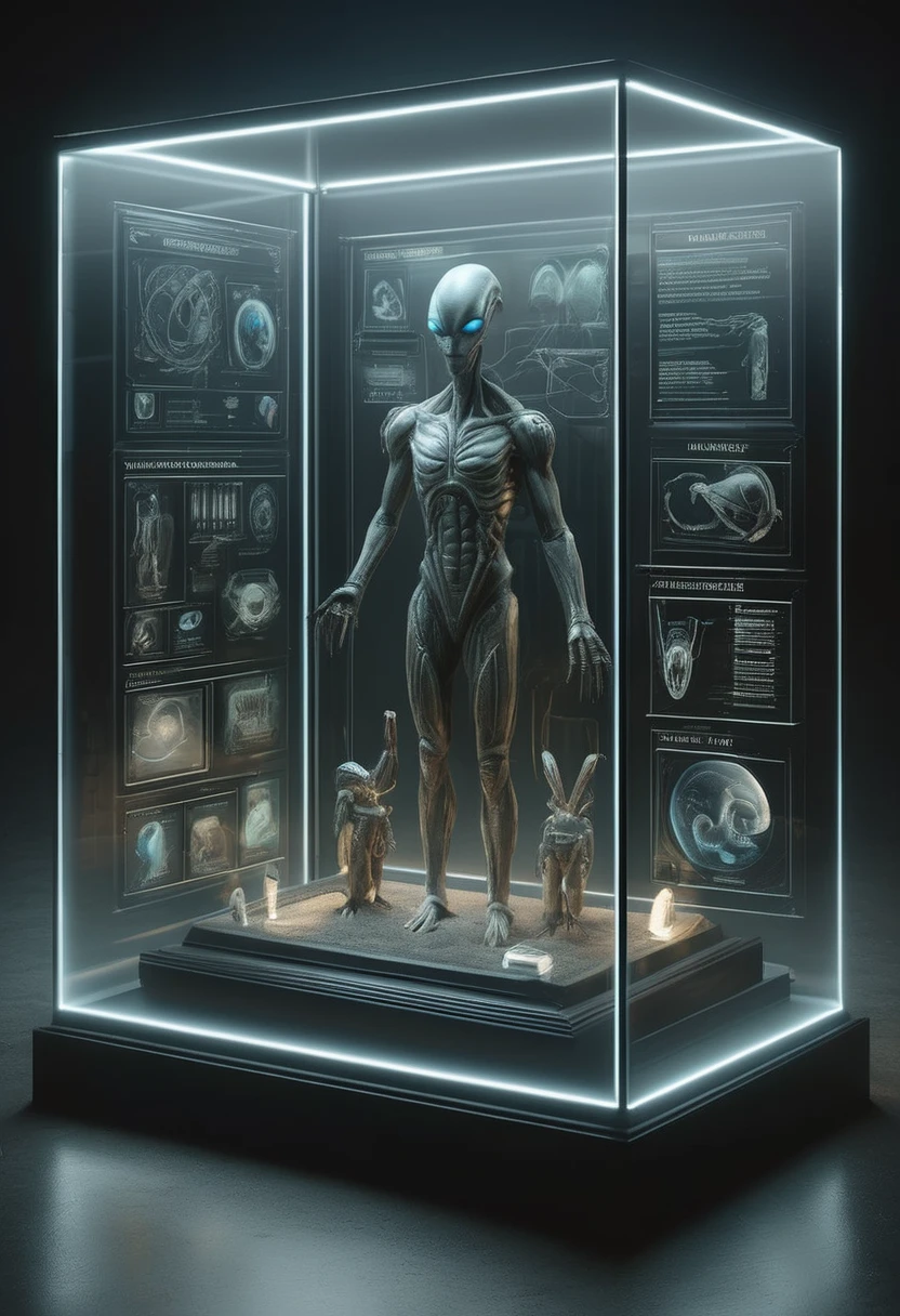 Don't describe the environment and the LoRA will likely provide something reflecting the contents of the display case.