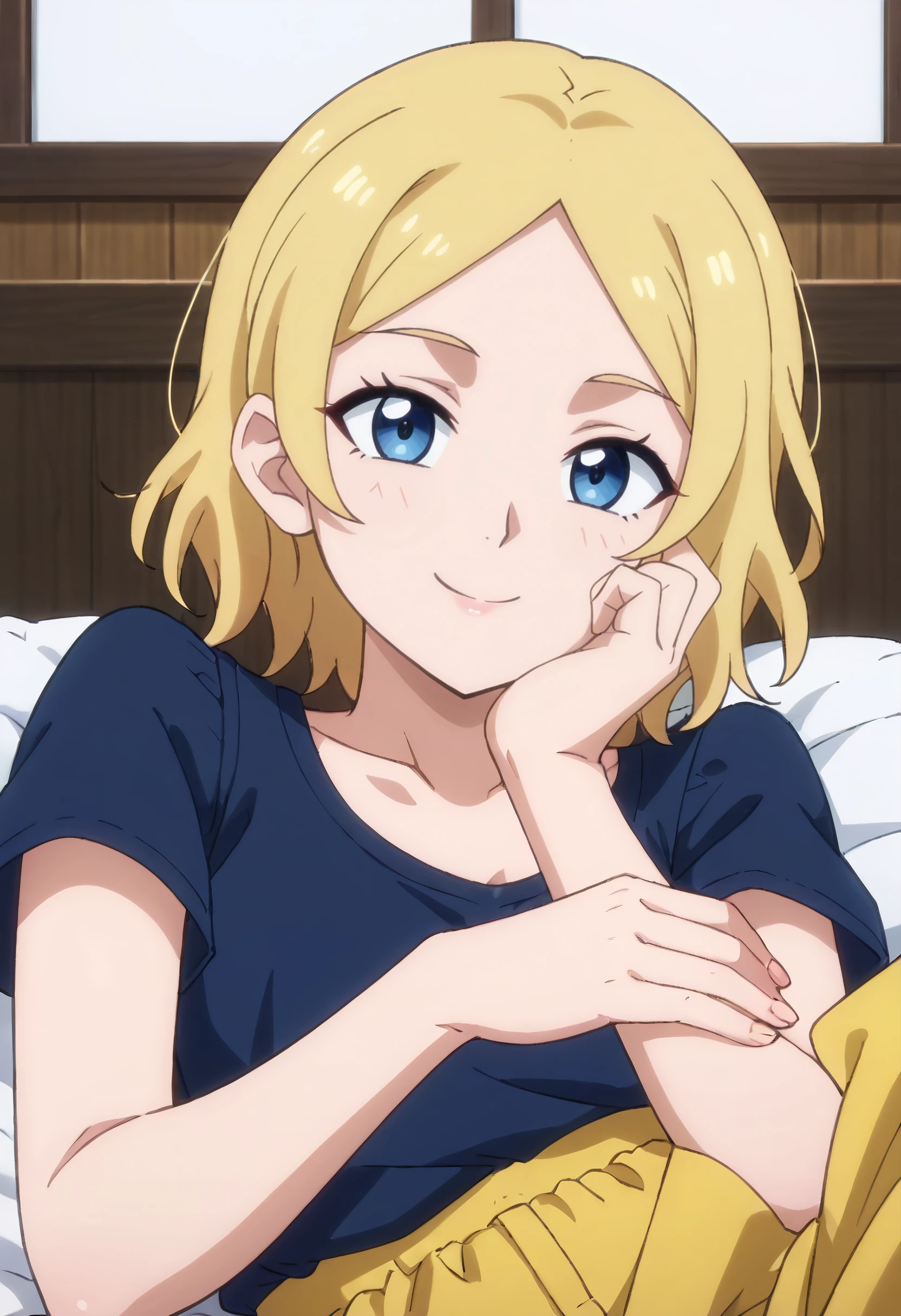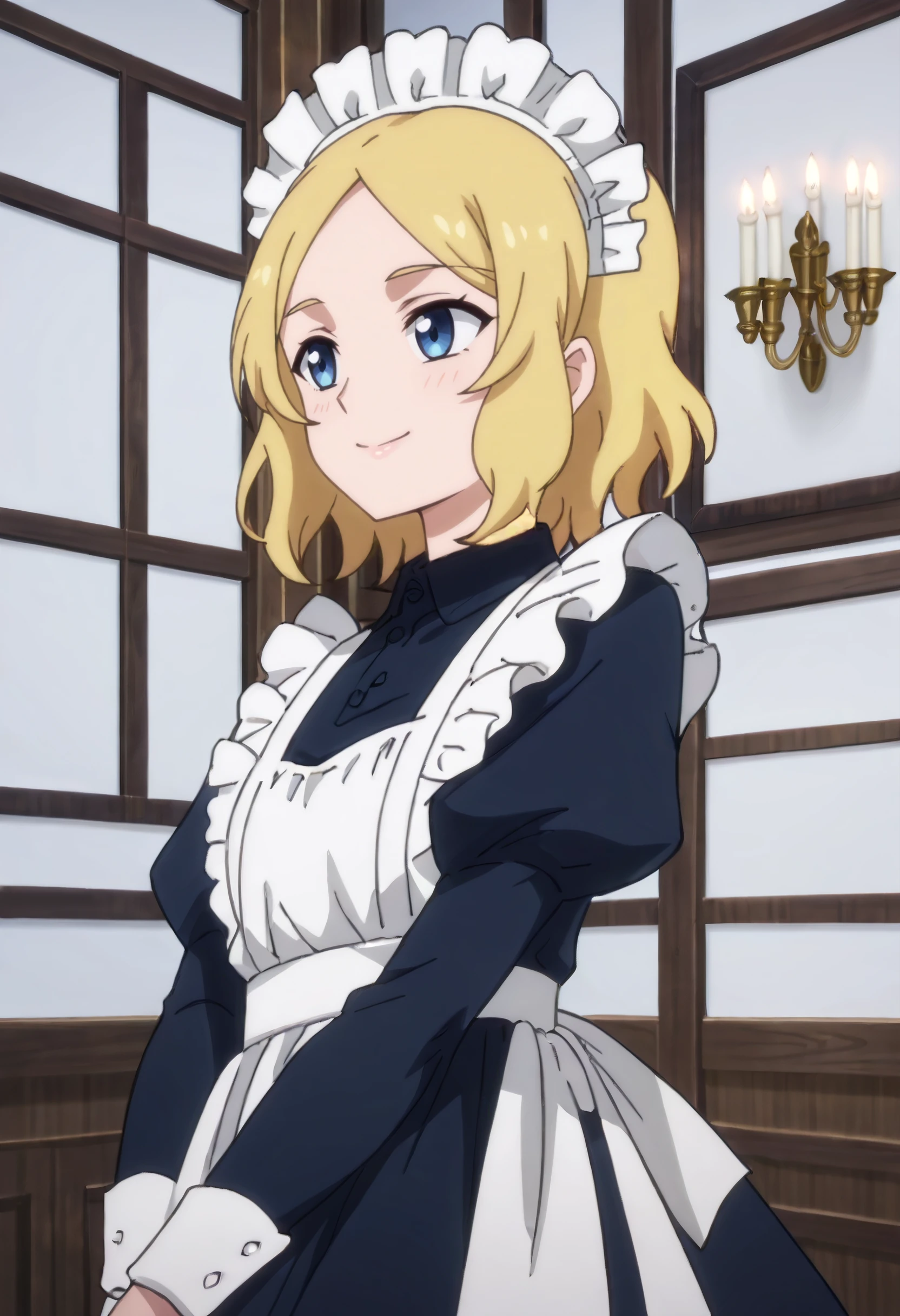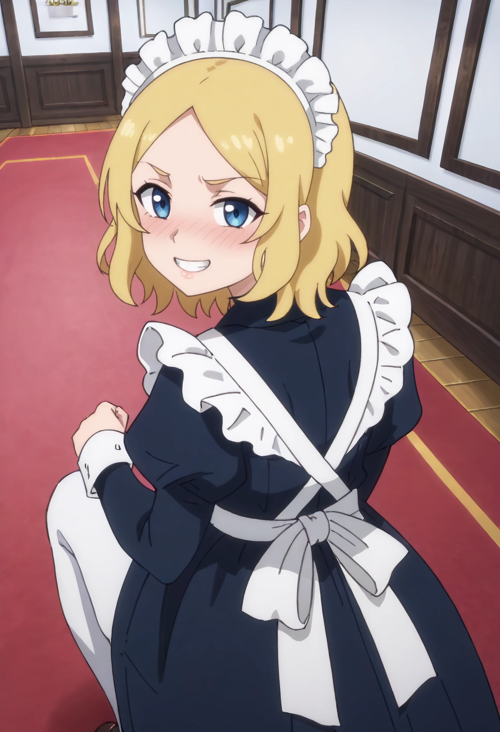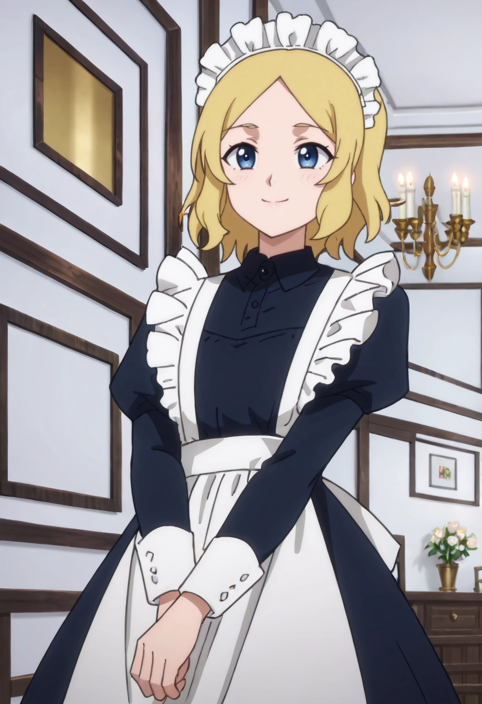 TNSBMaid, blonde hair, short hair, blue eyes, parted bangs,