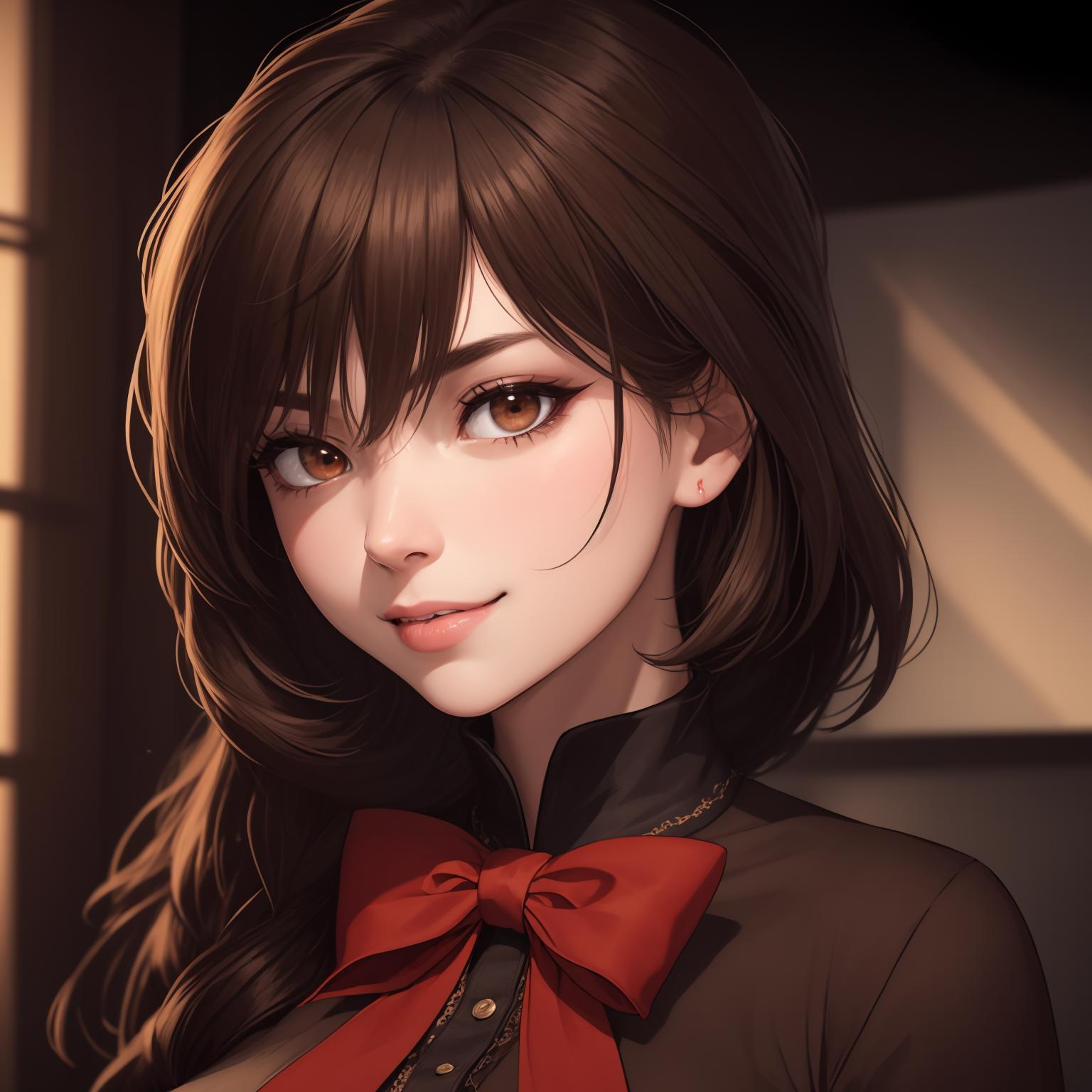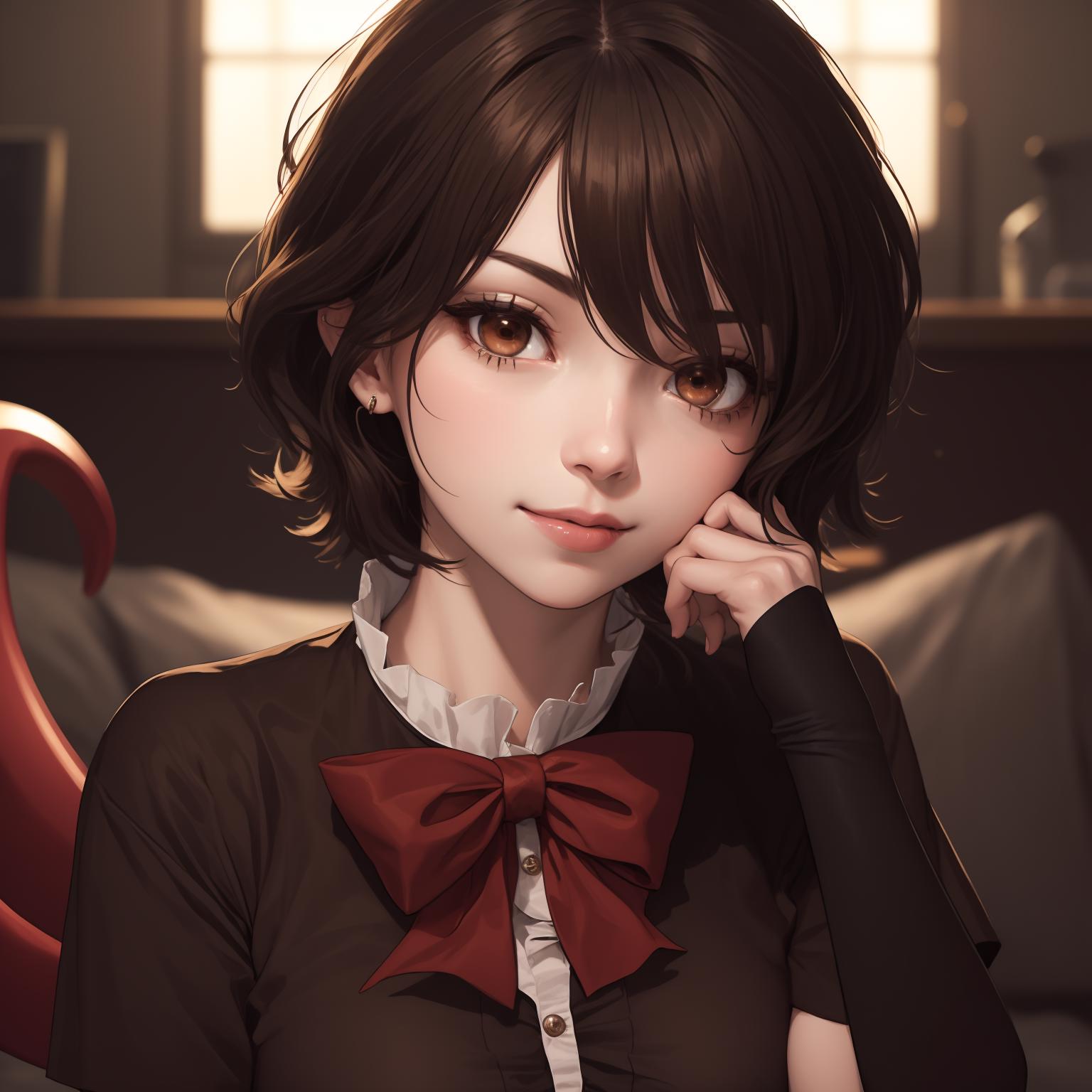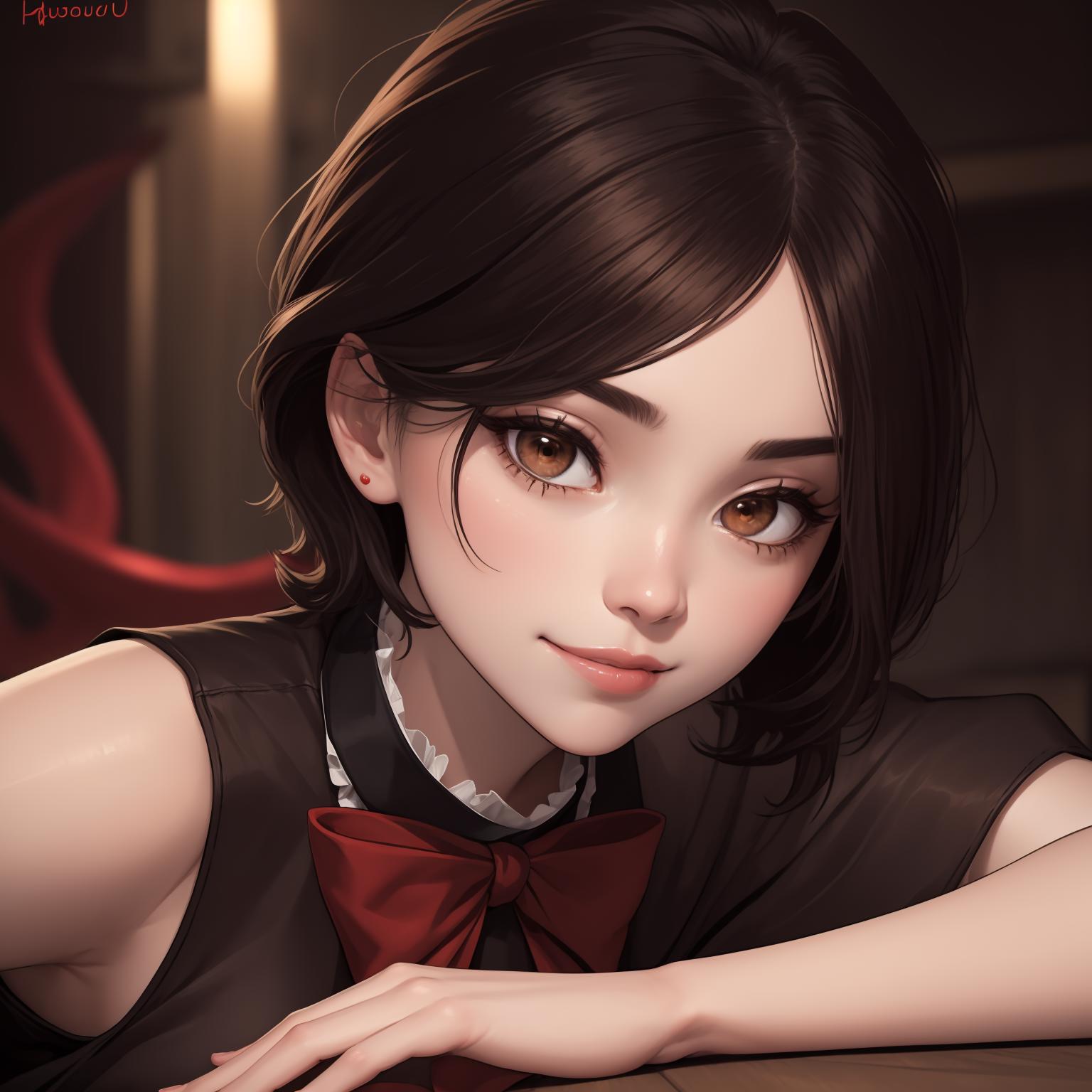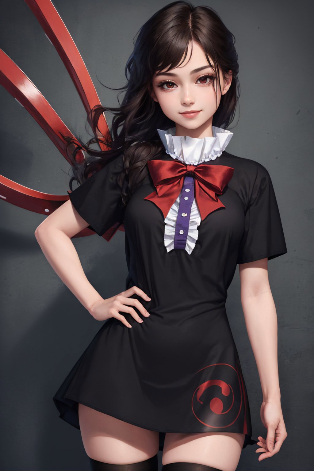 Default Outfit: black dress, red bowtie, short sleeves, black thighhighs