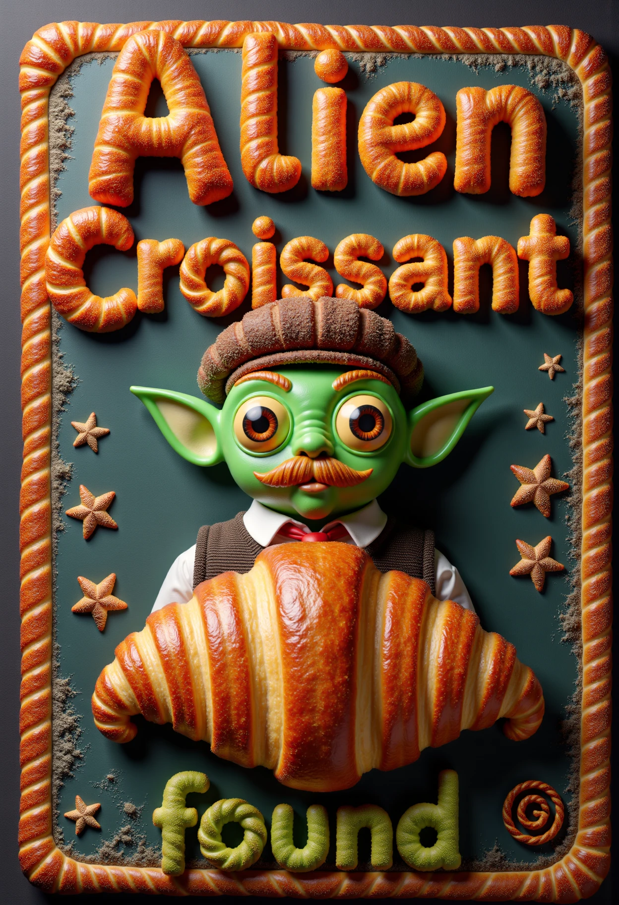 For this LORA I've had to painfully create each letter of the alphabet as pastry / croissant, merge them all in one file, adjust the colors and train.