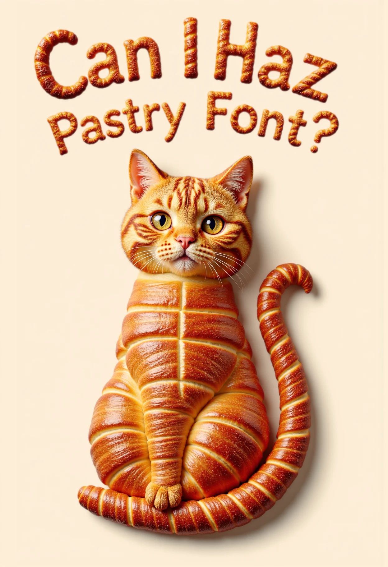 UPDATE: Wow, I'm blown away to be honest, you can prompt Flux to make the text out of anything (tried dollars, metal, honey, water etc) and it will keep the pastry texture ... this is crazy.