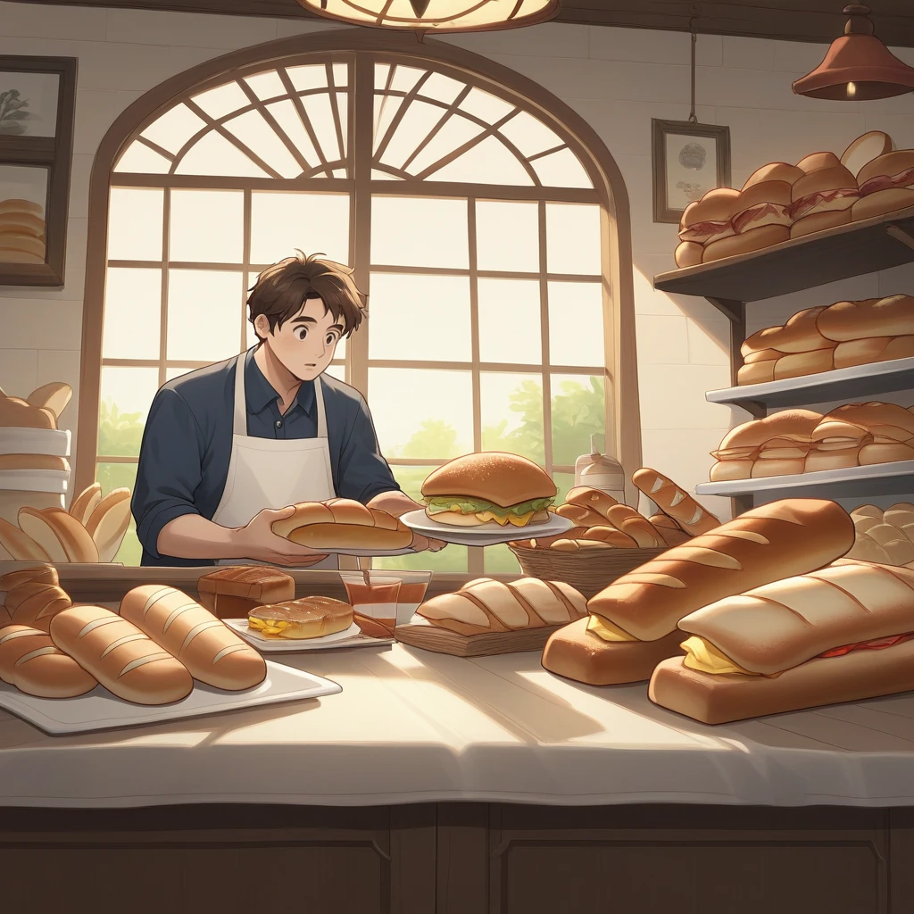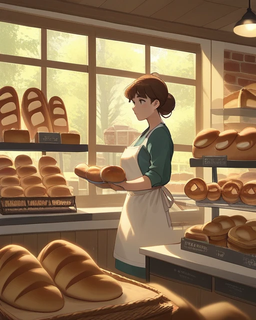 Optional: bakery, indoors, shop, bread, baguette, window