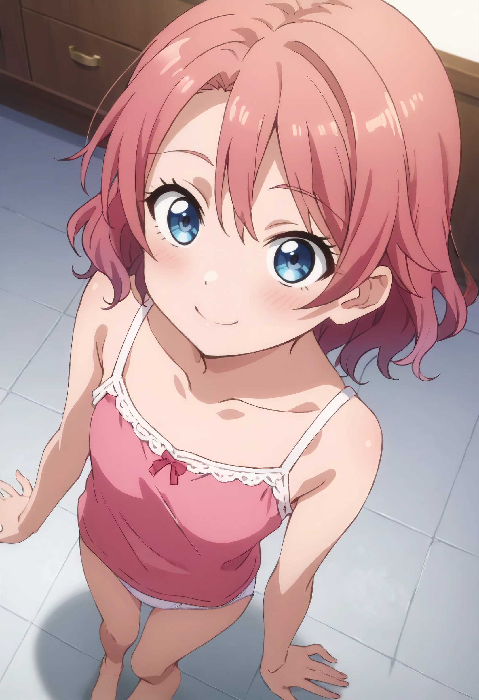 RikoSleep, collarbone, sleeveless, pink shirt, shirt, pink camisole, camisole, panties, t-shirt, underwear, bare shoulders, white panties,