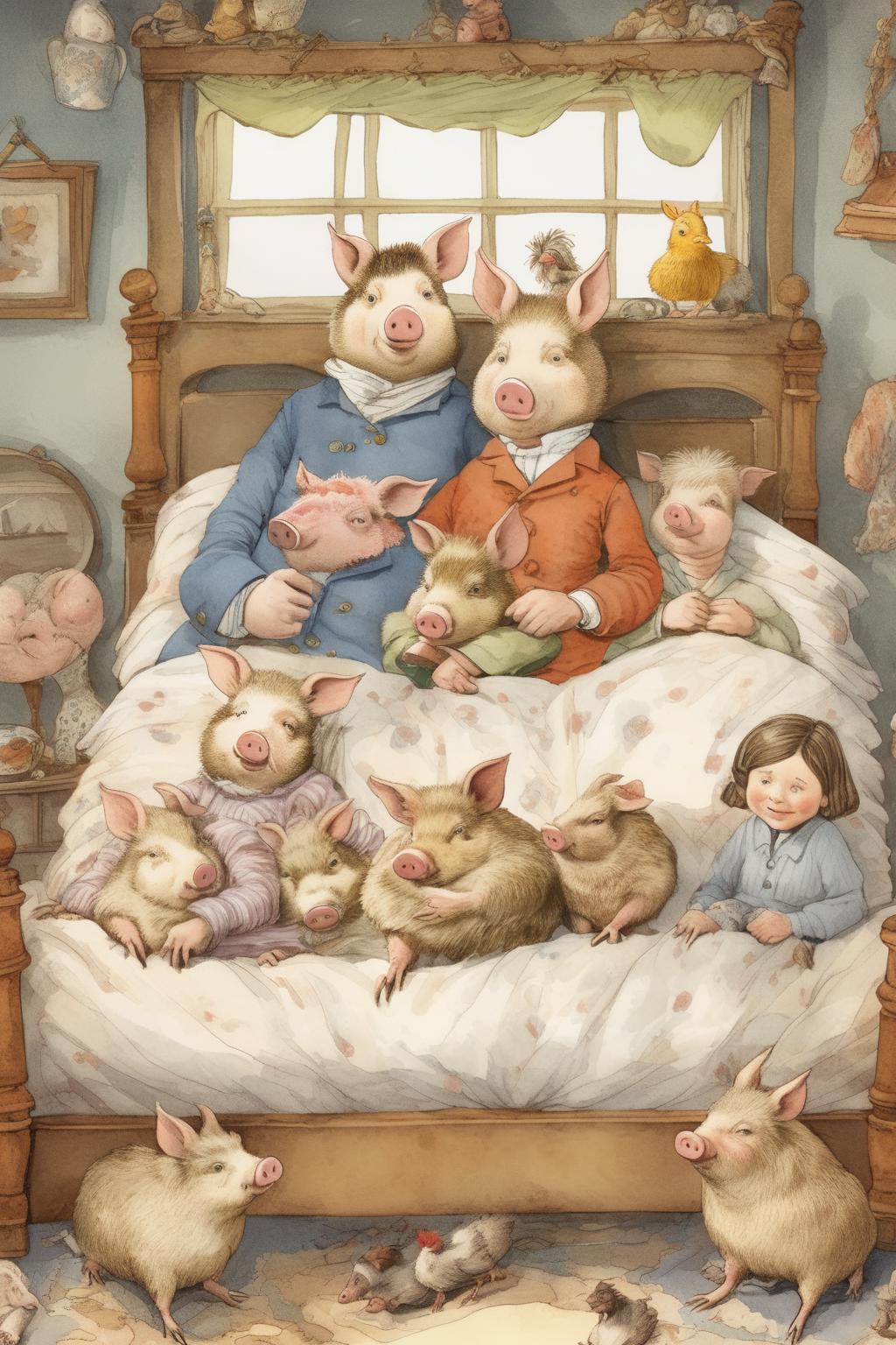 Caldecott's illustrations were also renowned for their use of color and texture. He employed watercolors, ink, and other media to bring his characters and scenes to life, creating a sense of depth and atmosphere.