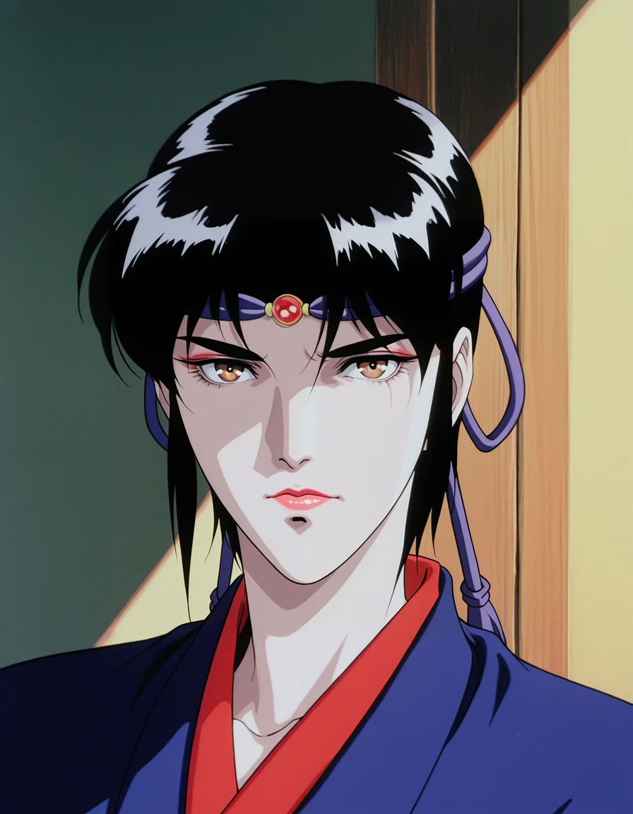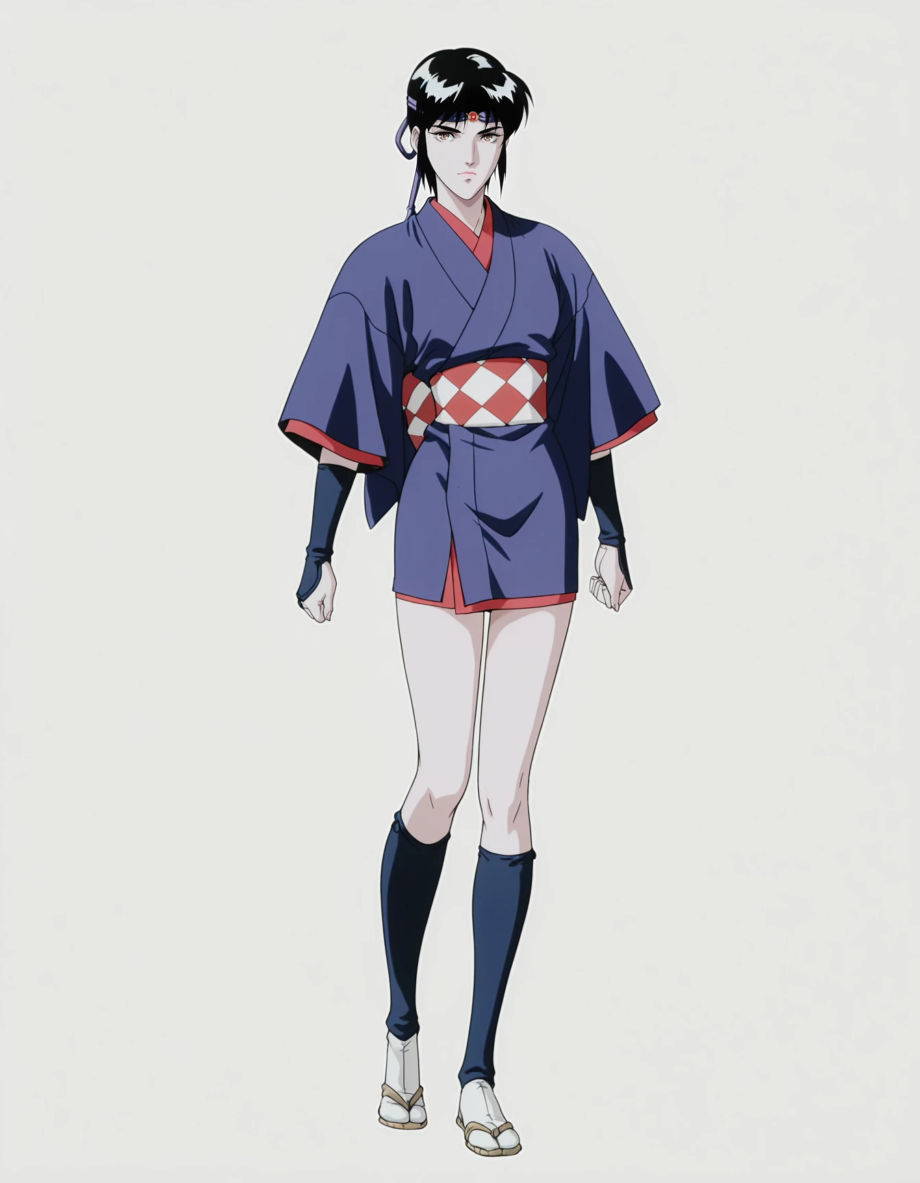 mai_juun,mai_kagerouju,short_hair,black_hair,brown_eyes,headband,japanese_clothes,short_kimono,sash,obi