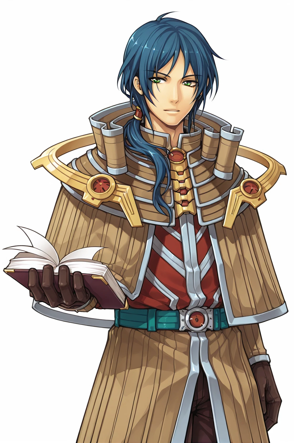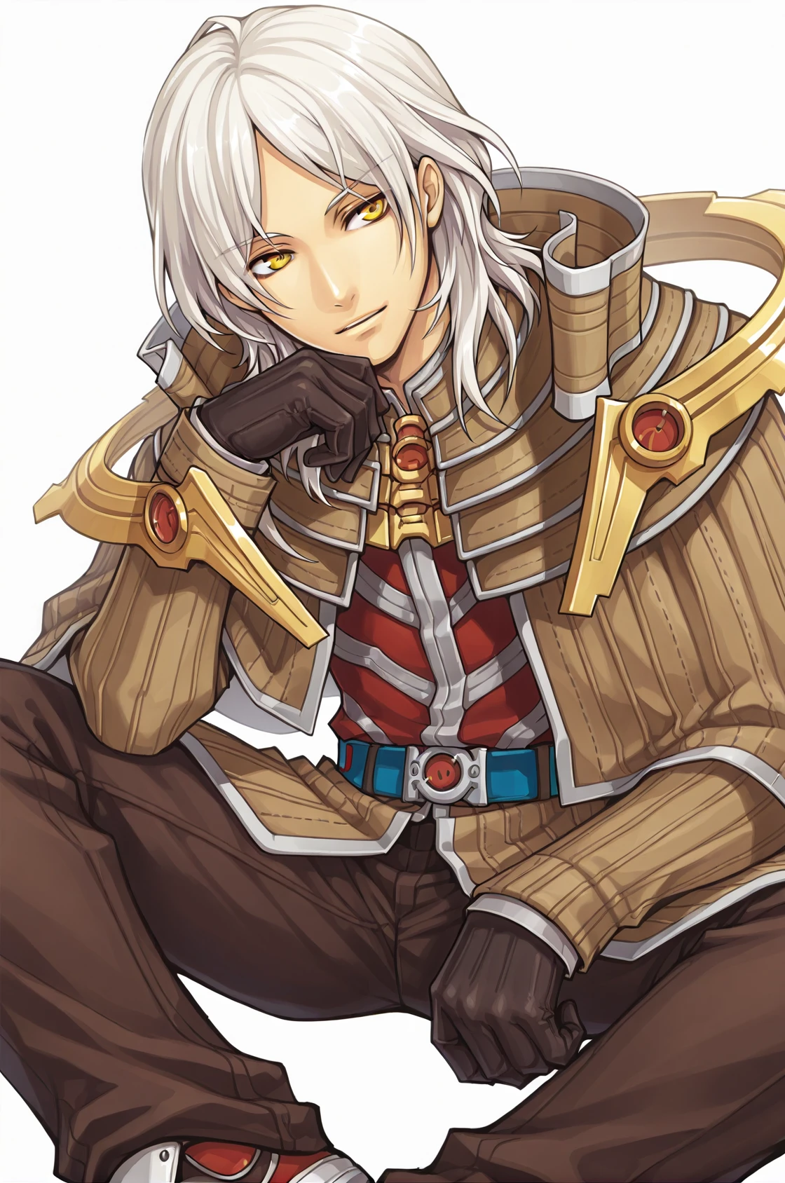 prompt: sageROMale, gloves, brown coat, brown capelet, long sleeves, shoulder armor, belt, pants, shoes