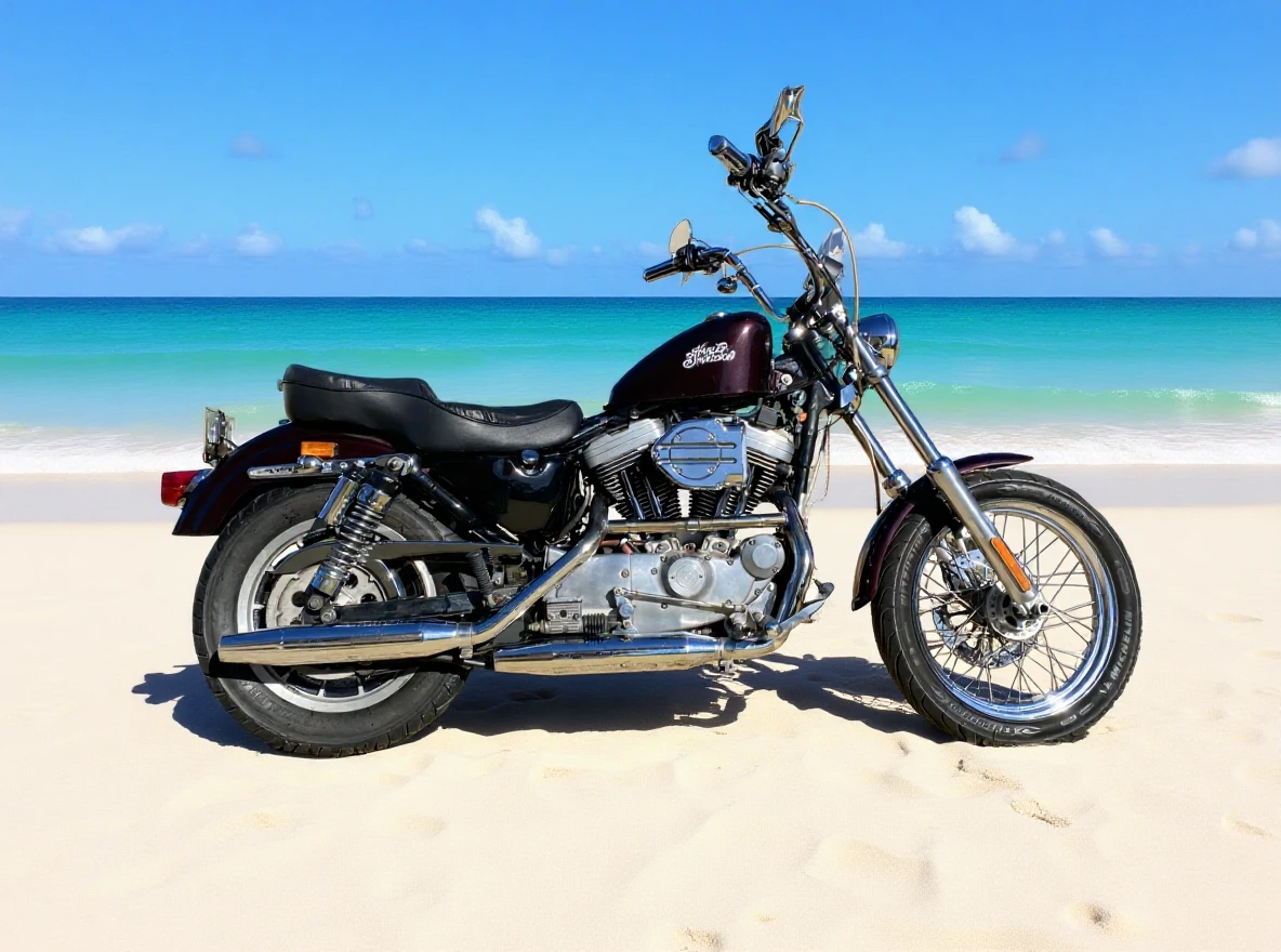 A Flux1D LoRA remake of my '97 XLH1200 Sportster LoRA, stuck a Wide Glide front end, different bars, headlight, yada yada on it, yeh I own the bike, just changed it up a bit.