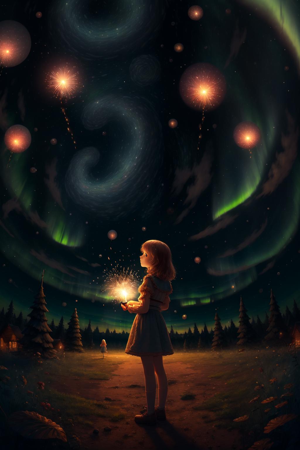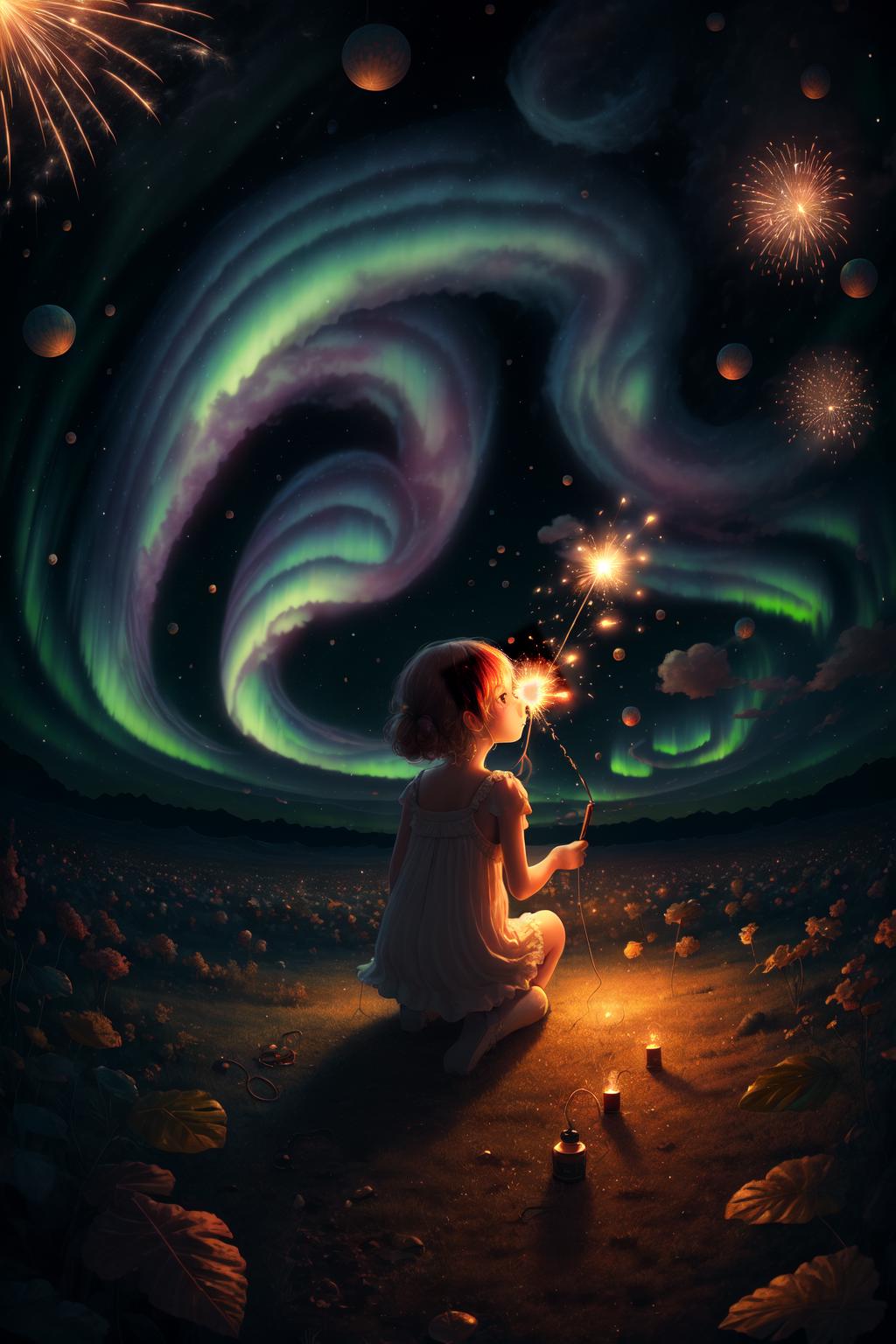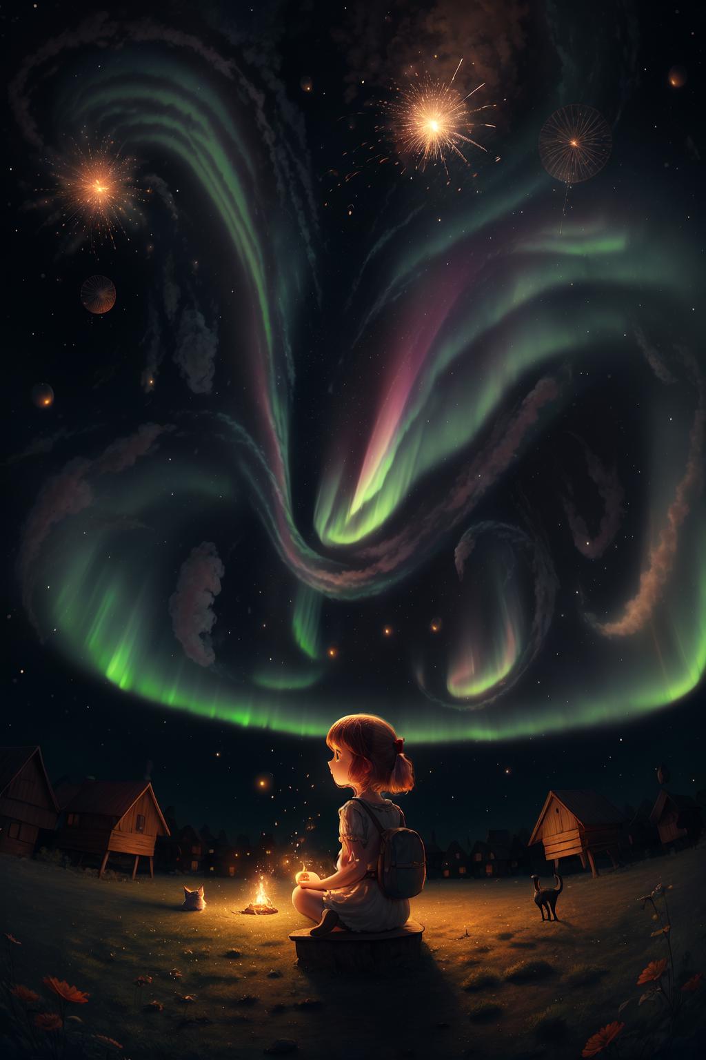 召唤美丽的北极光,烟花,星空