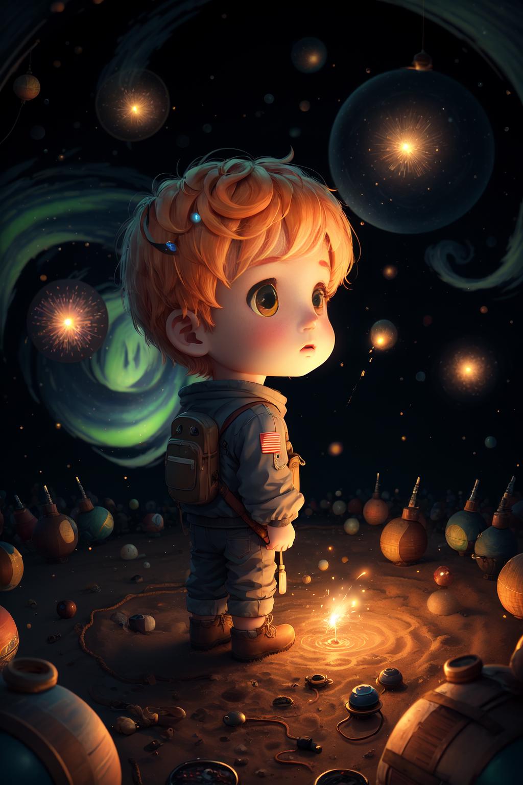 Keywords 1boy,lovestar, aerial fireworks, astronaut, aurora, milk way, festival, starry sky, chibi.