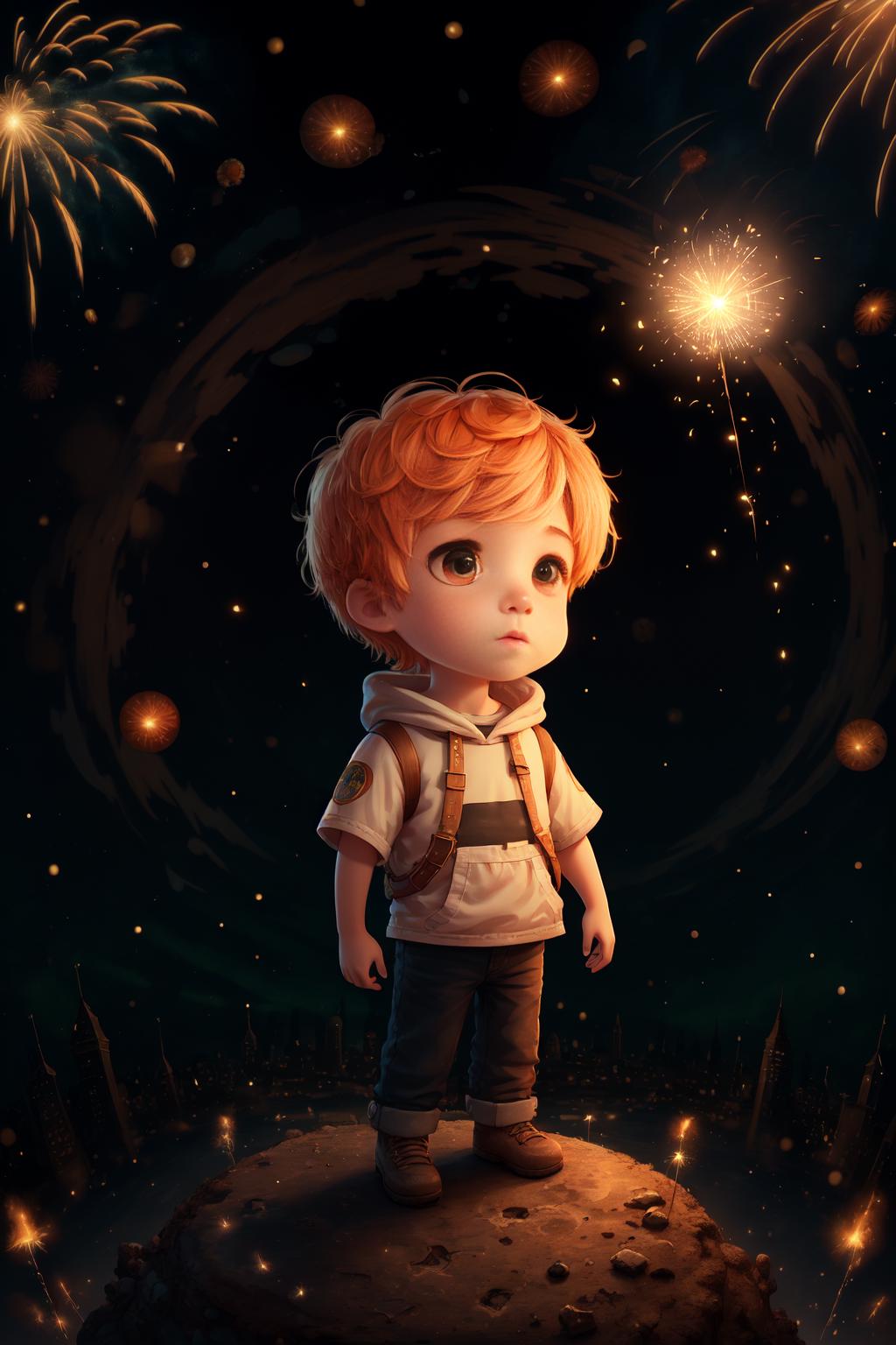 关键词 1boy,lovestar, aerial fireworks, astronaut, aurora, milk way, festival, starry sky, chibi,