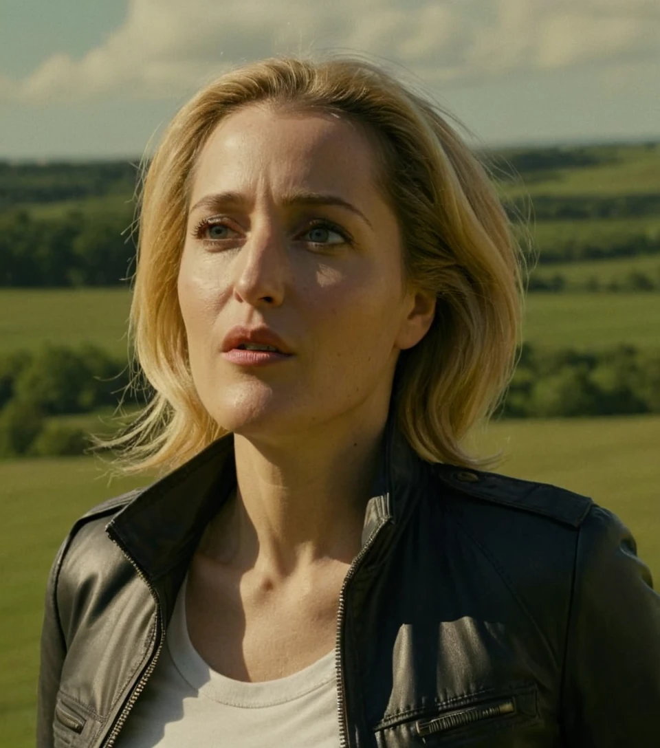 Try this prompt "a portrait (gillianxx:1.2) with a UFO behind"