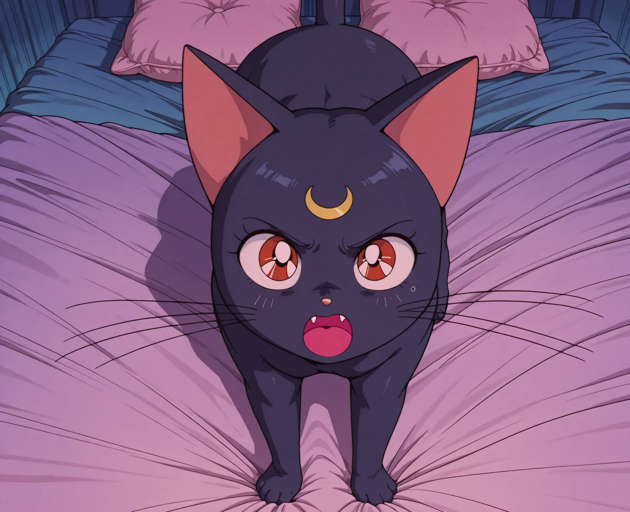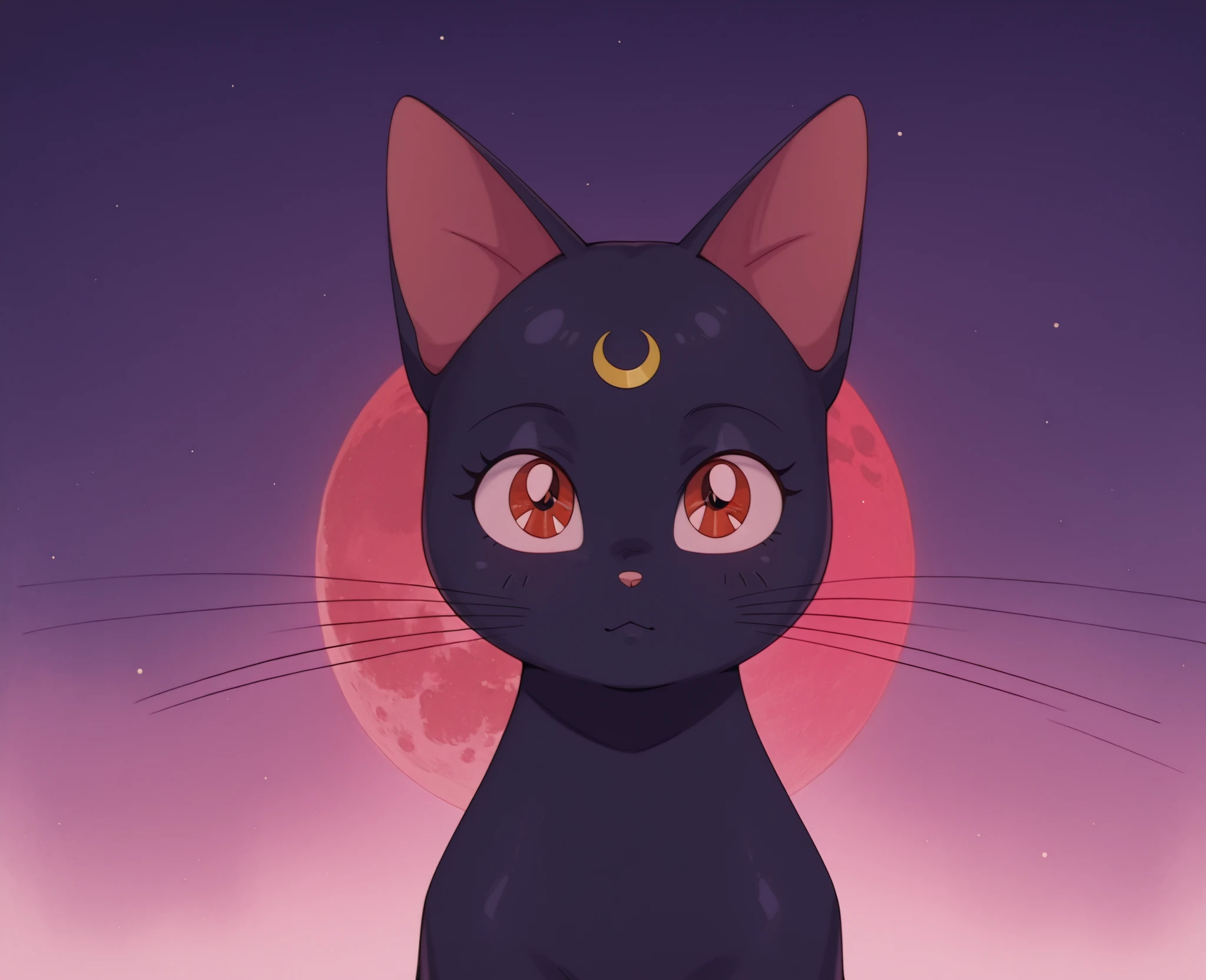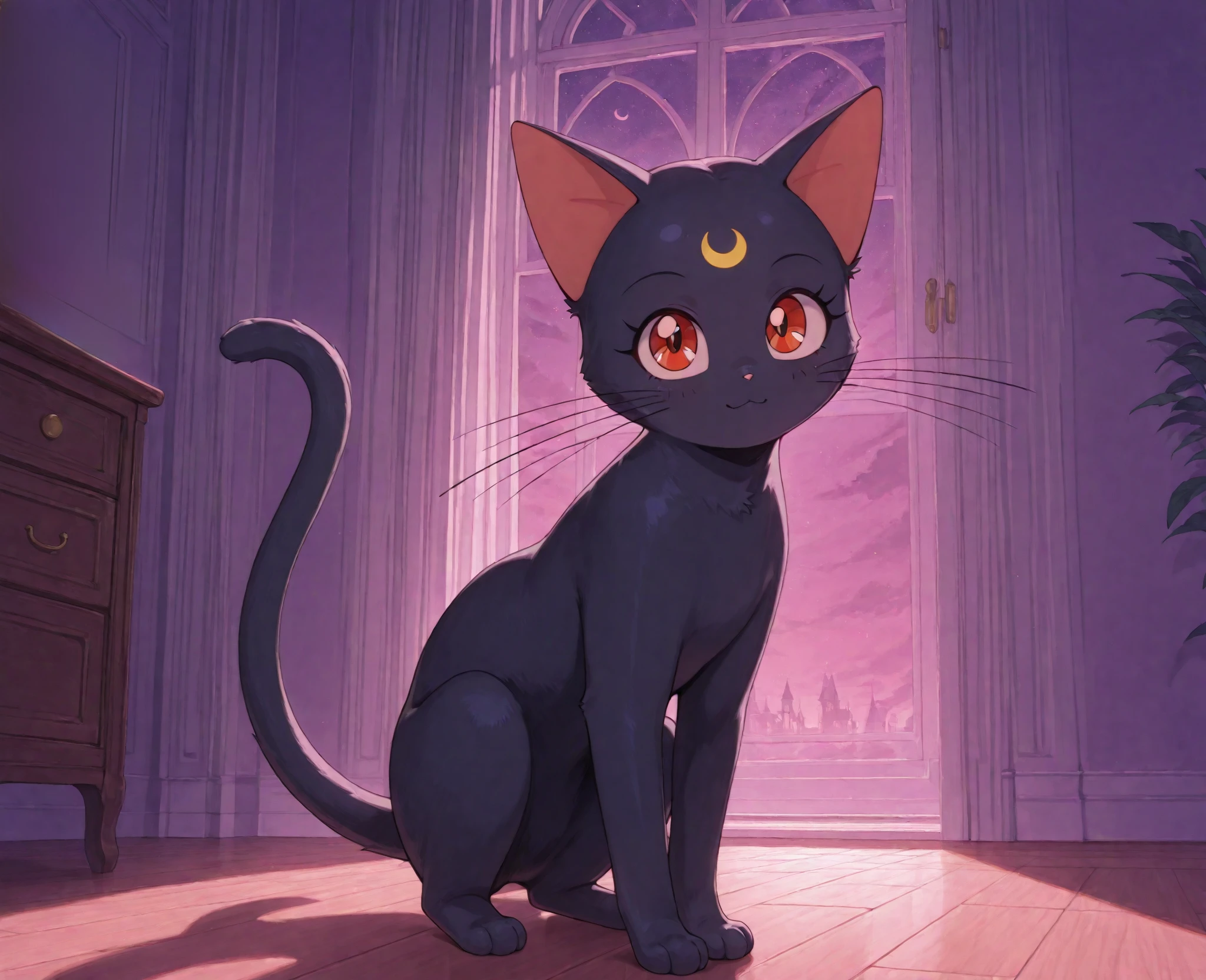 Luna — is a talking bluish-gray cat with a yellow crescent moon on her forehead, a constant companion of Sailor Moon. At the beginning of the story, Luna gave Usagi a magic brooch and taught her how to transform into Sailor Moon with it.