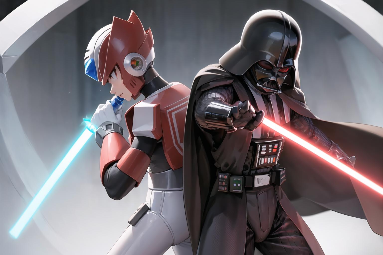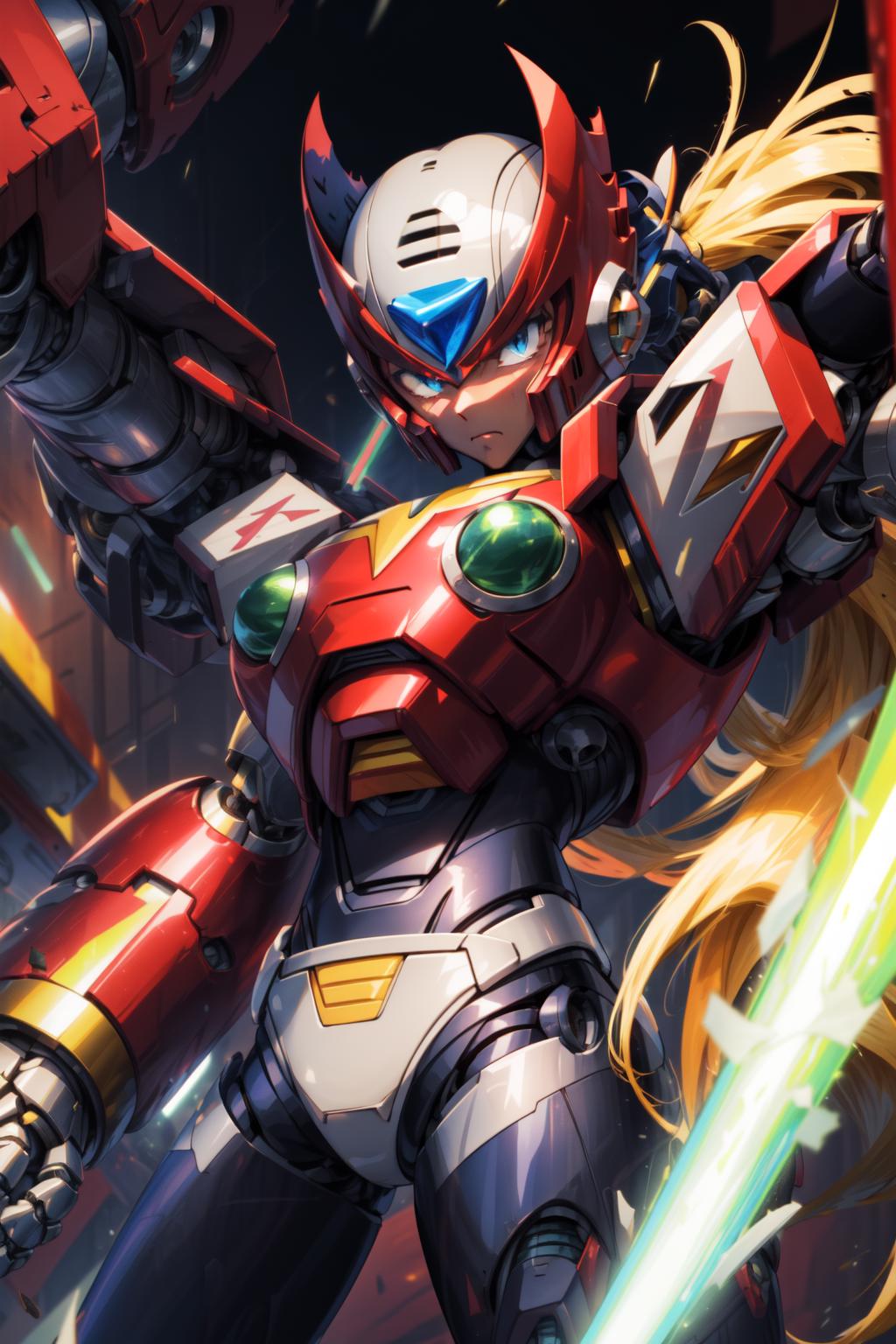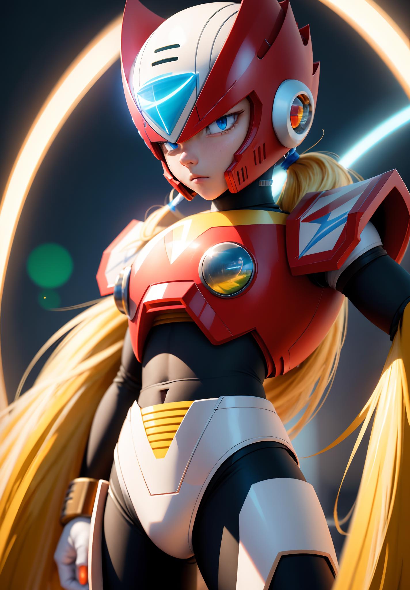 blue eyes, blonde hair, ponytail, very long hair, long hair, helmet, android, male focus