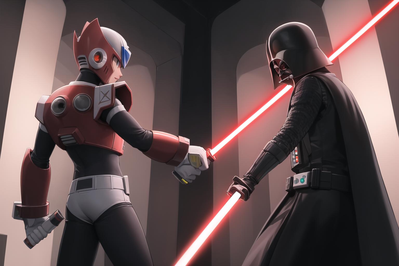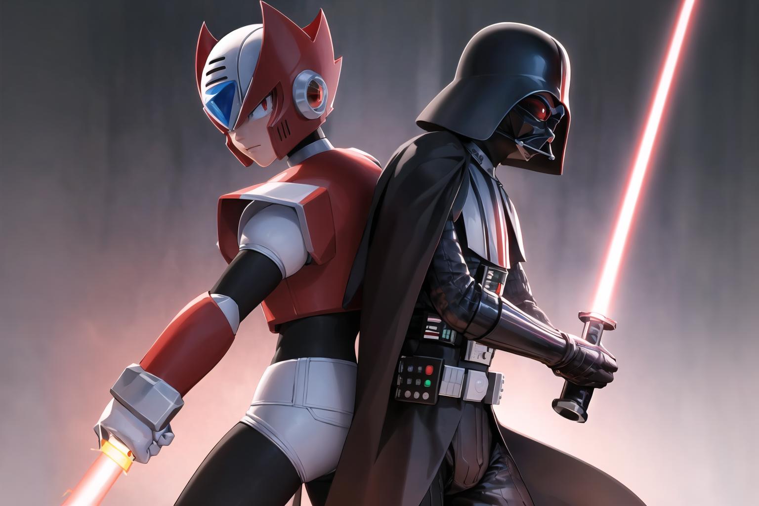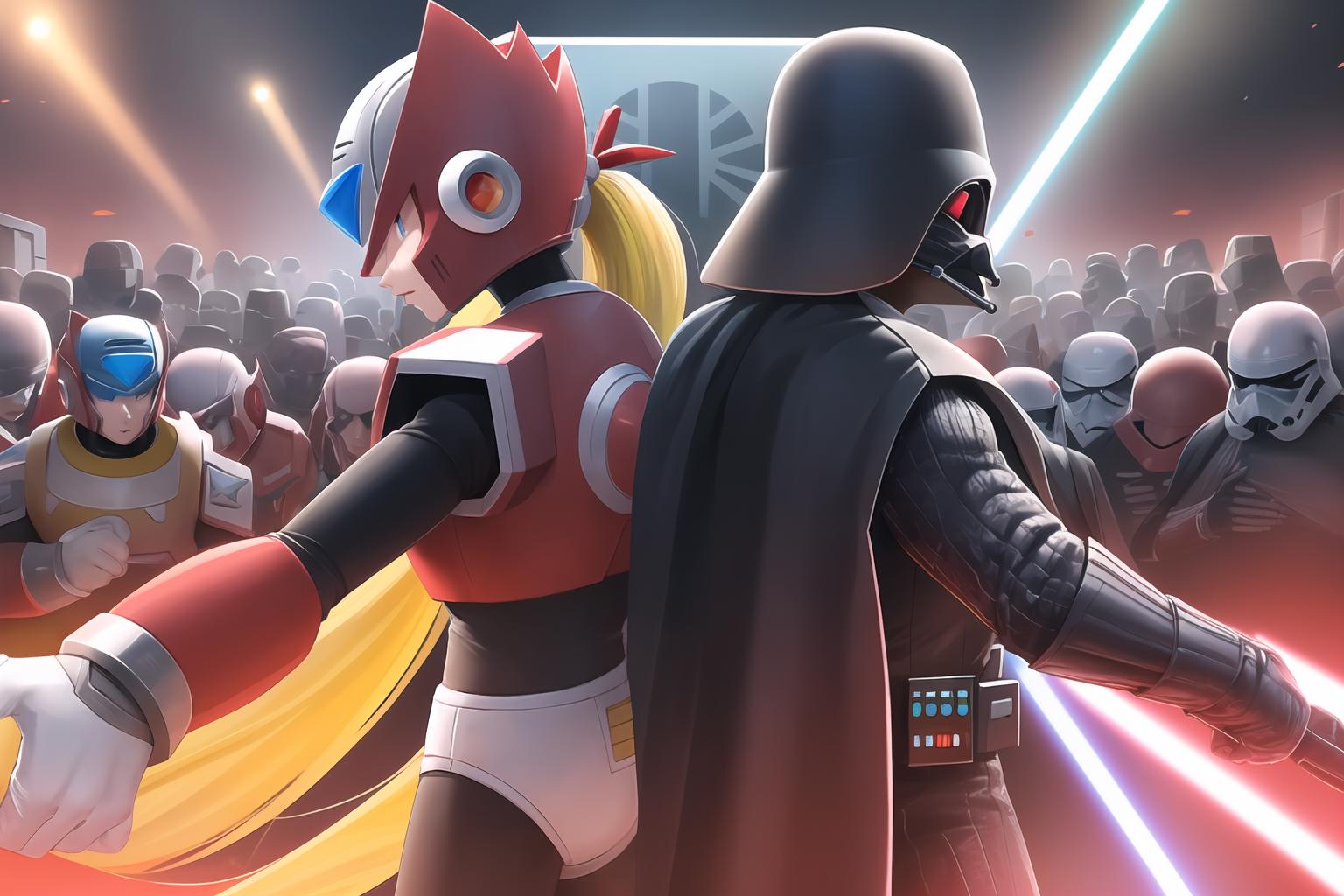 blue eyes, blonde hair, ponytail, very long hair, long hair, helmet, android, male focus
